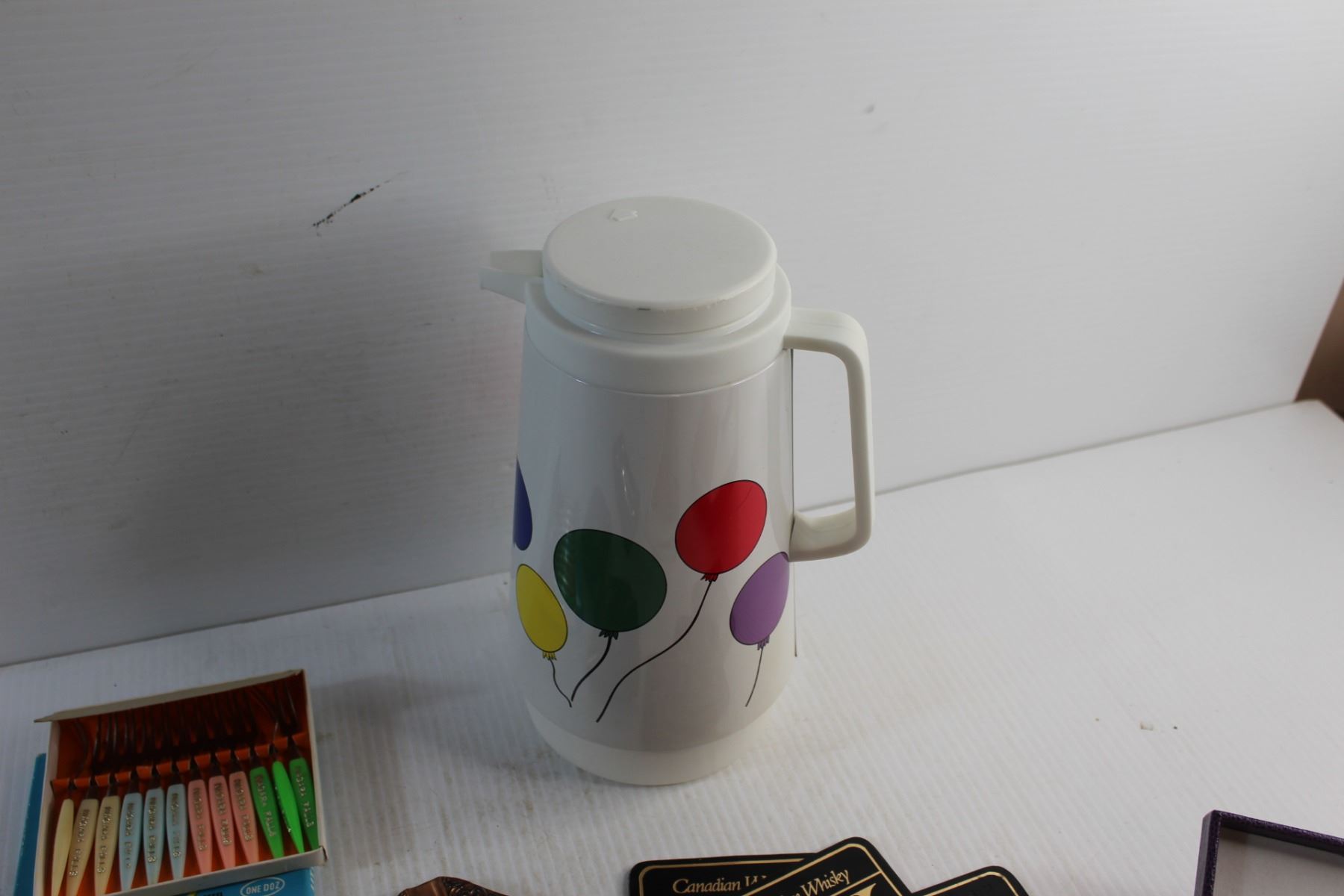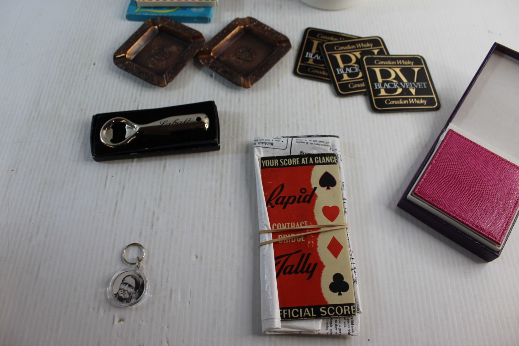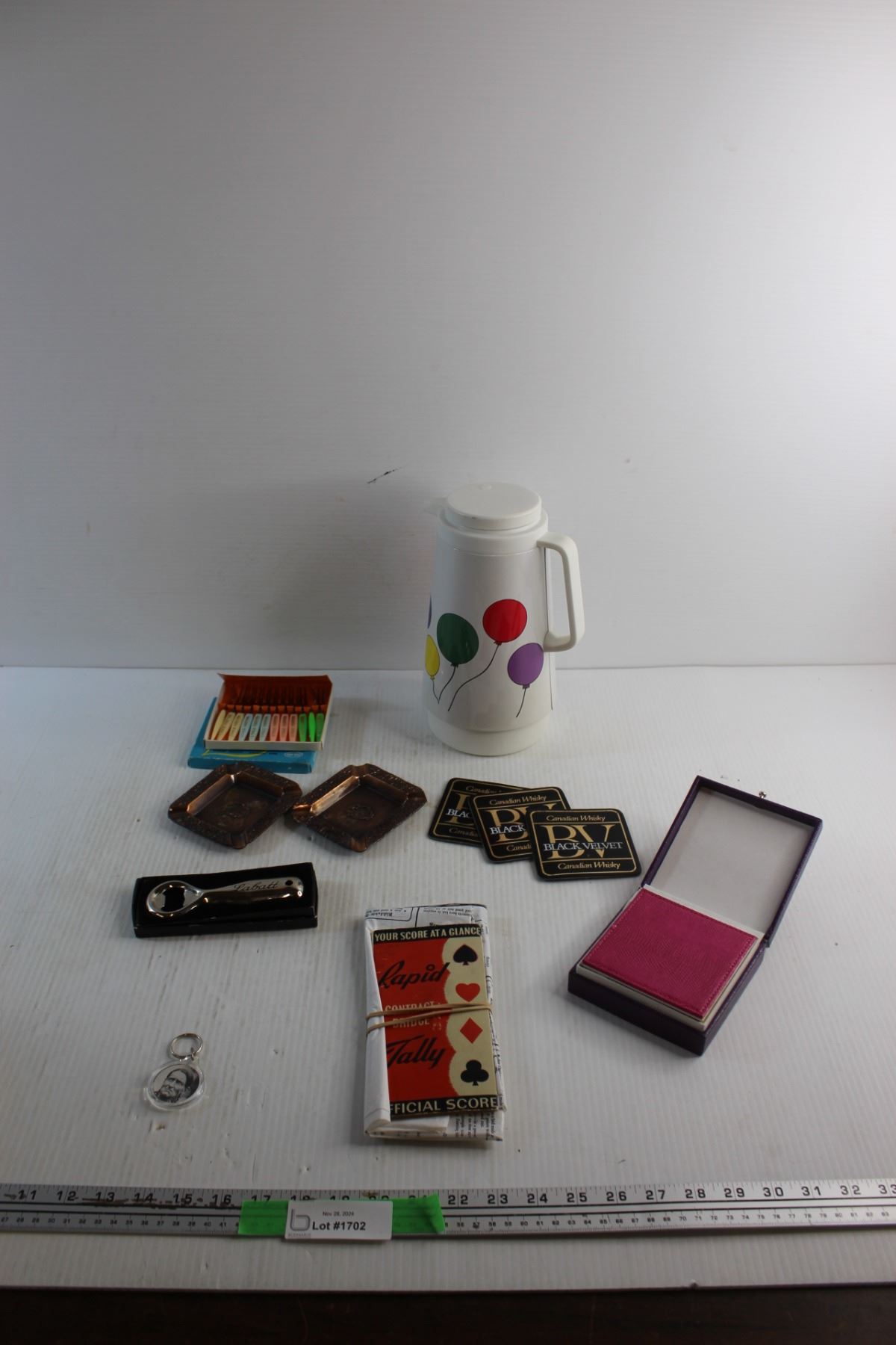 Water Pitcher, Coasters, Labatt Bottle Opener, Mini Forks, Ash Trays and Key Chain