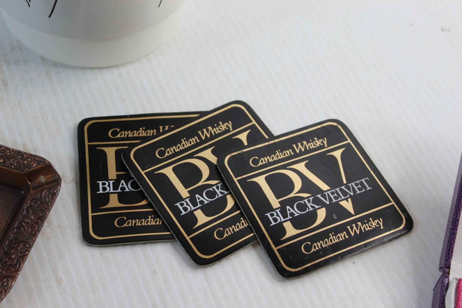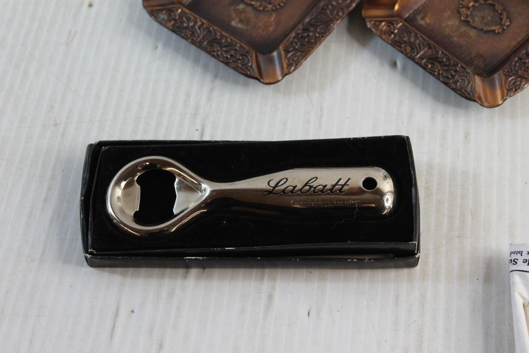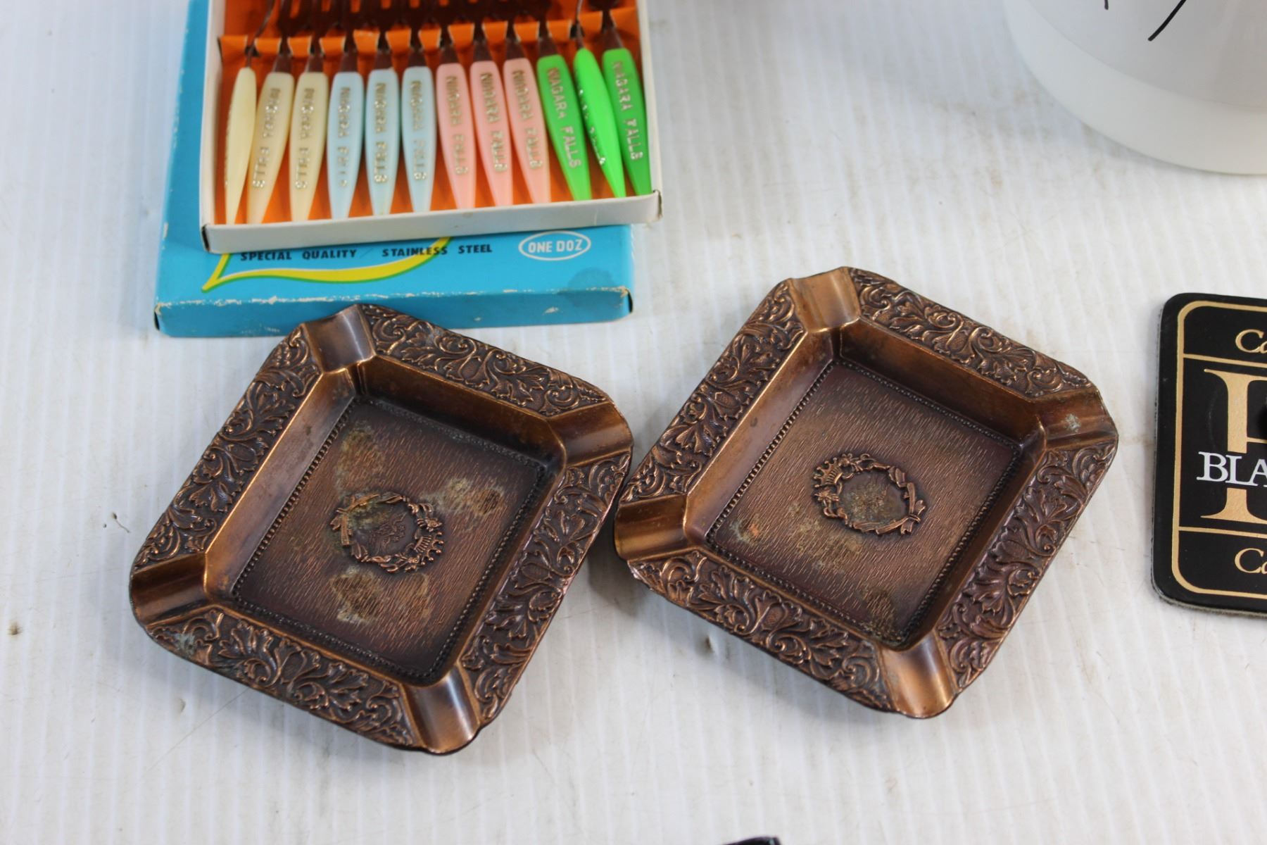 Water Pitcher, Coasters, Labatt Bottle Opener, Mini Forks, Ash Trays and Key Chain