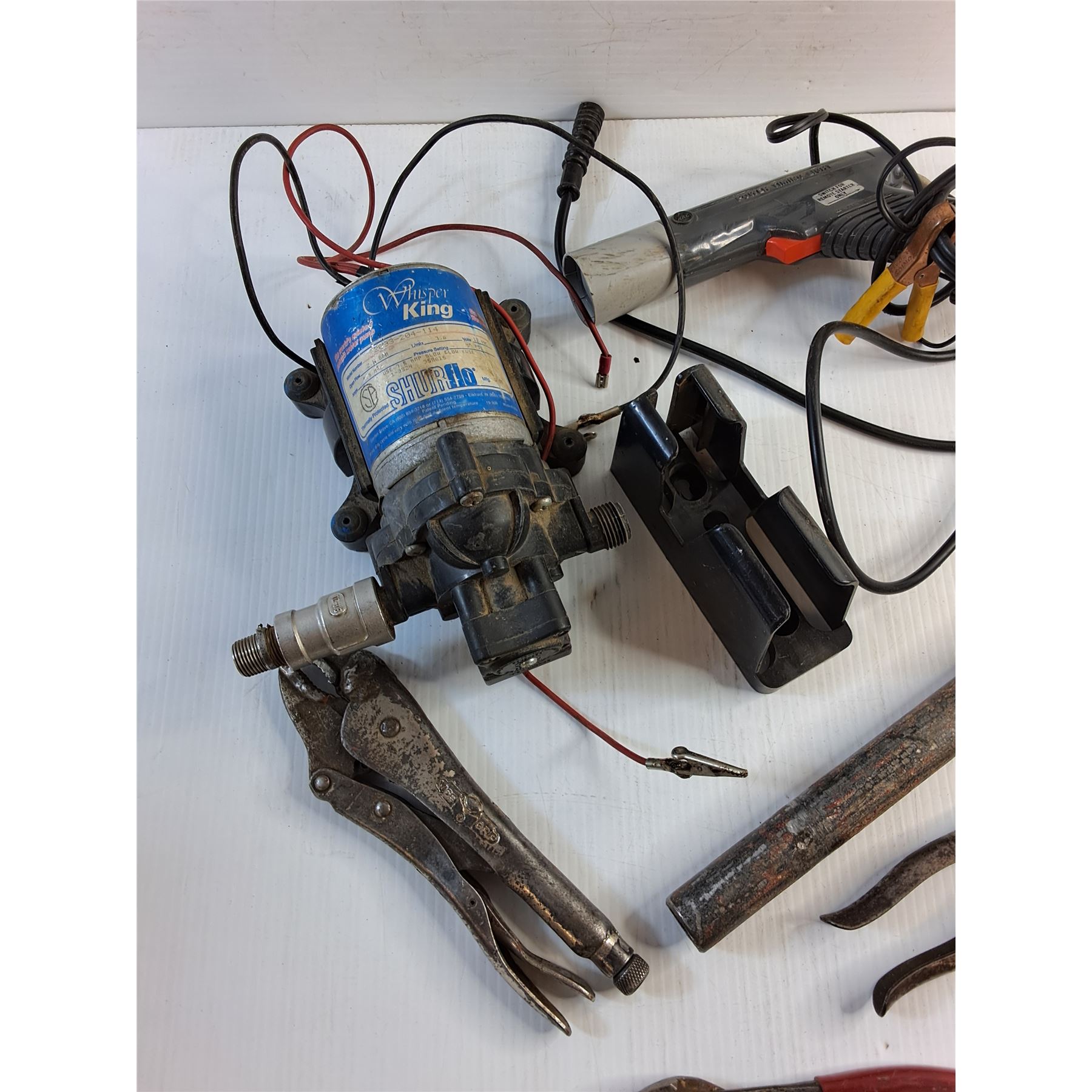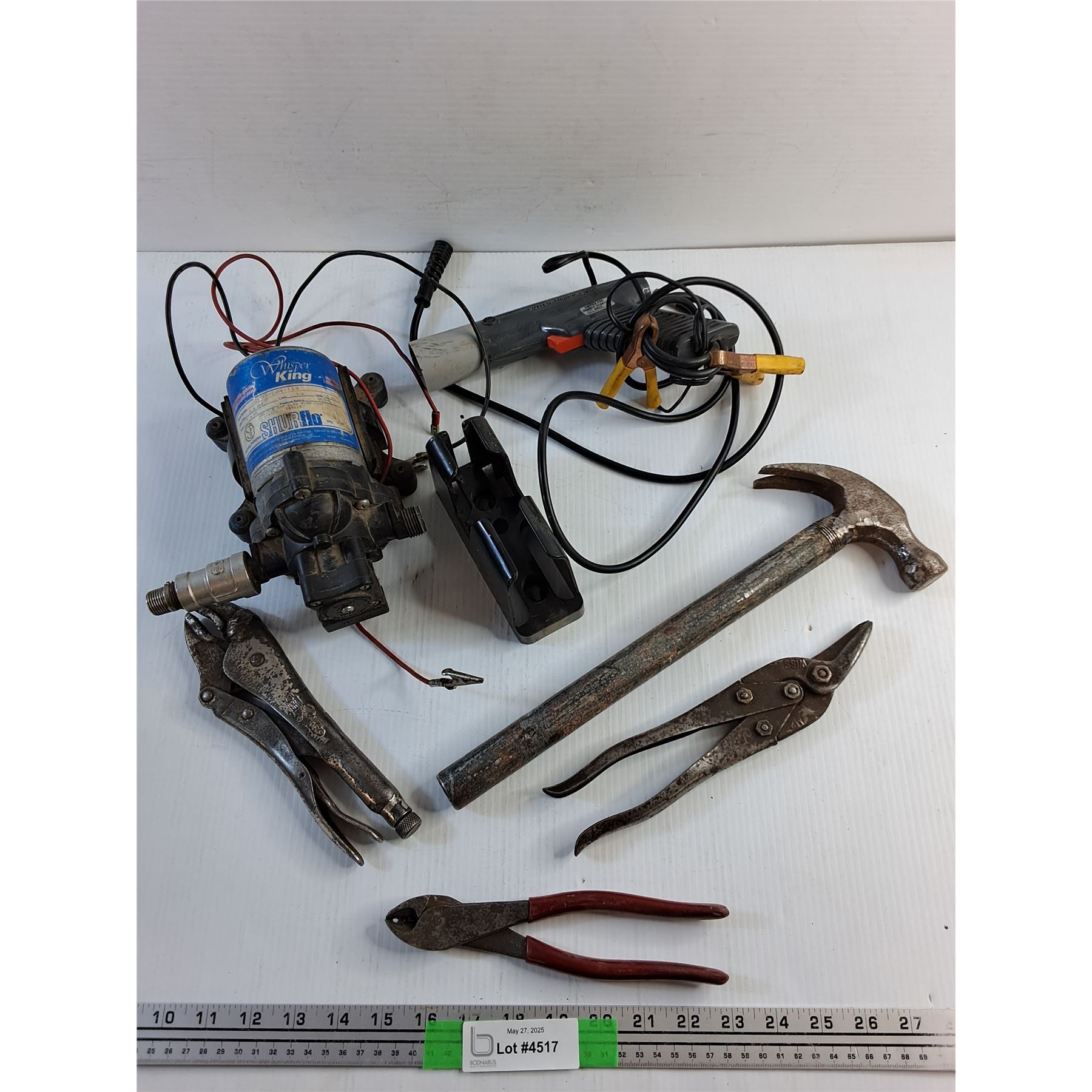 Water Pump, Power Timing Light, Wise Grips, Tin Shears, Hammer and Wire Cutter
