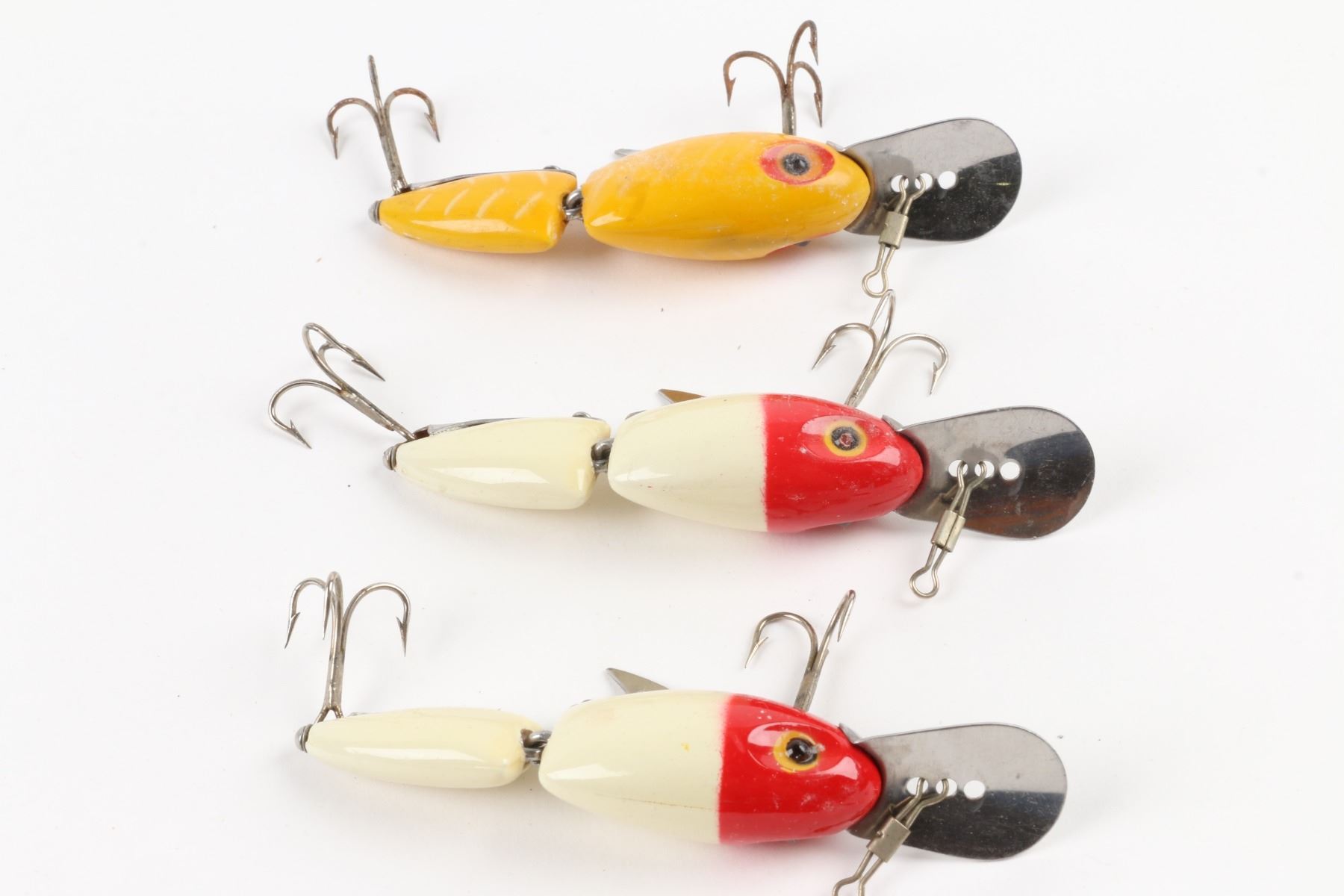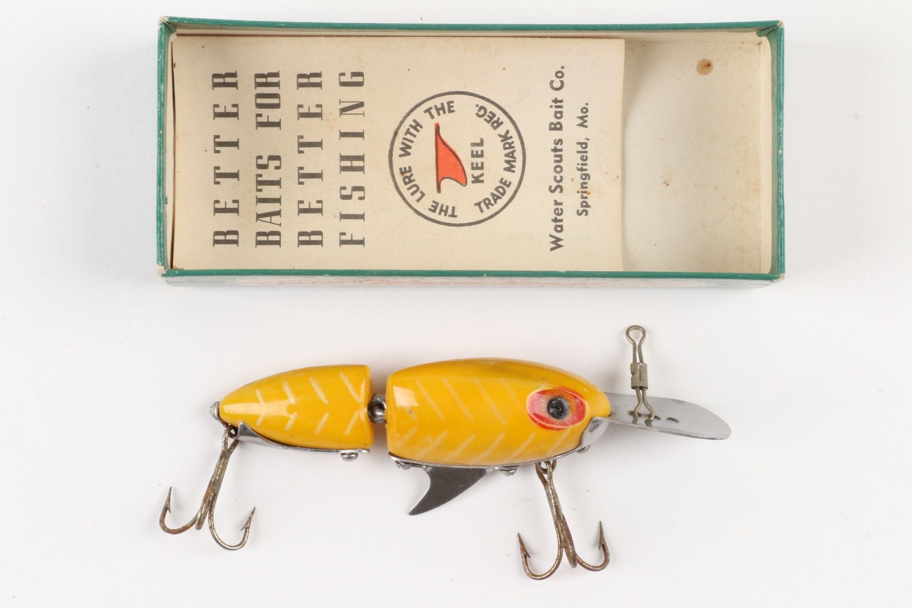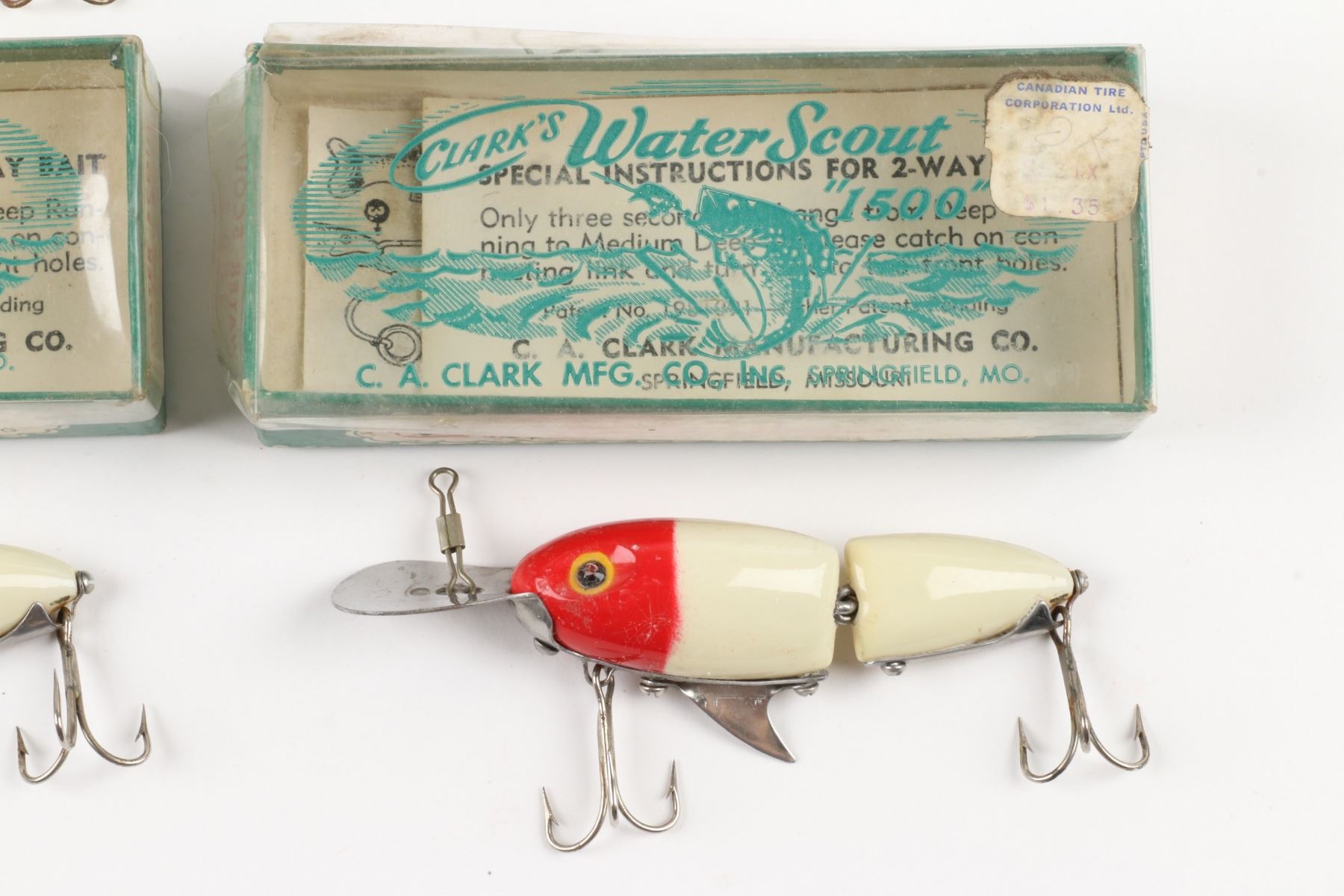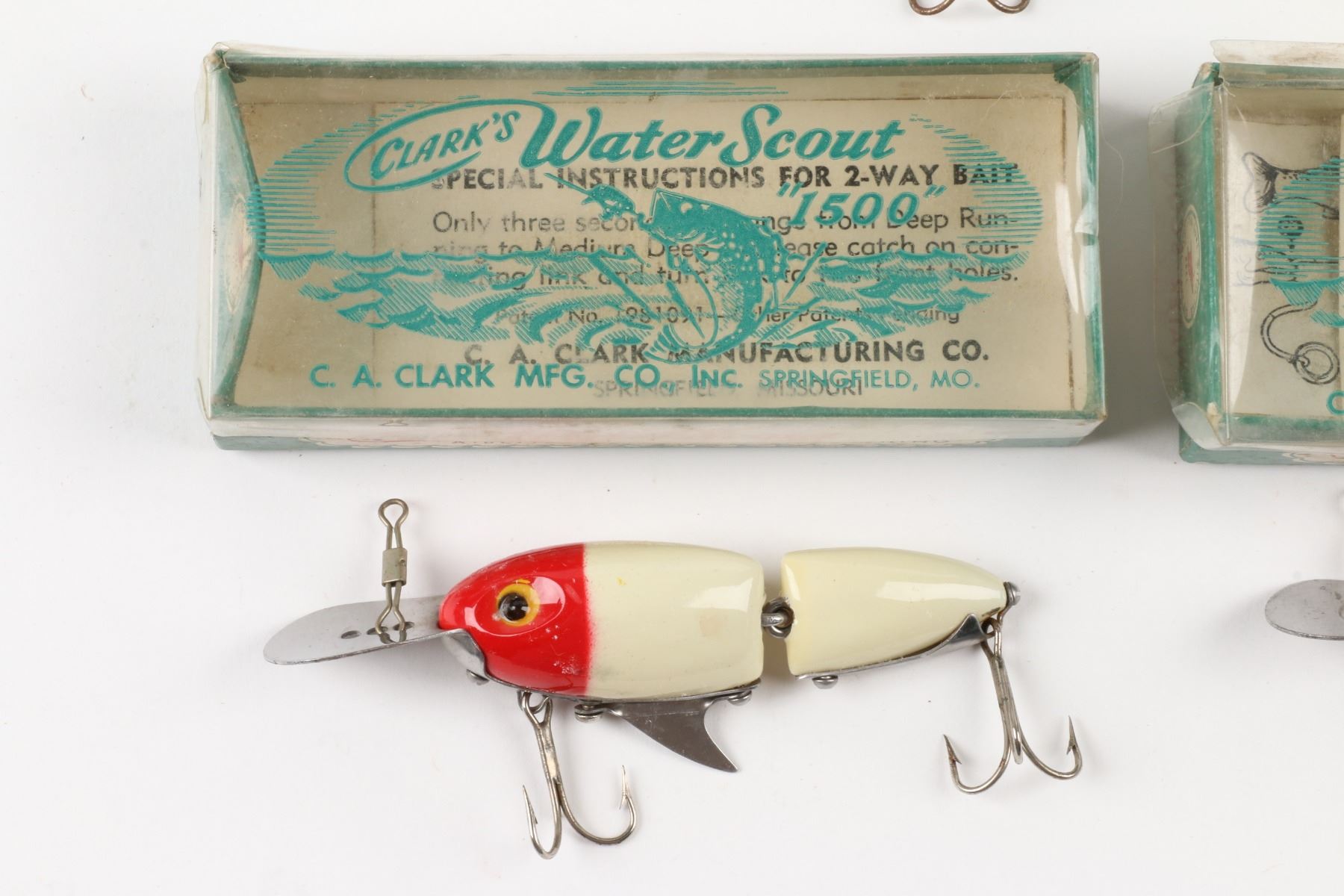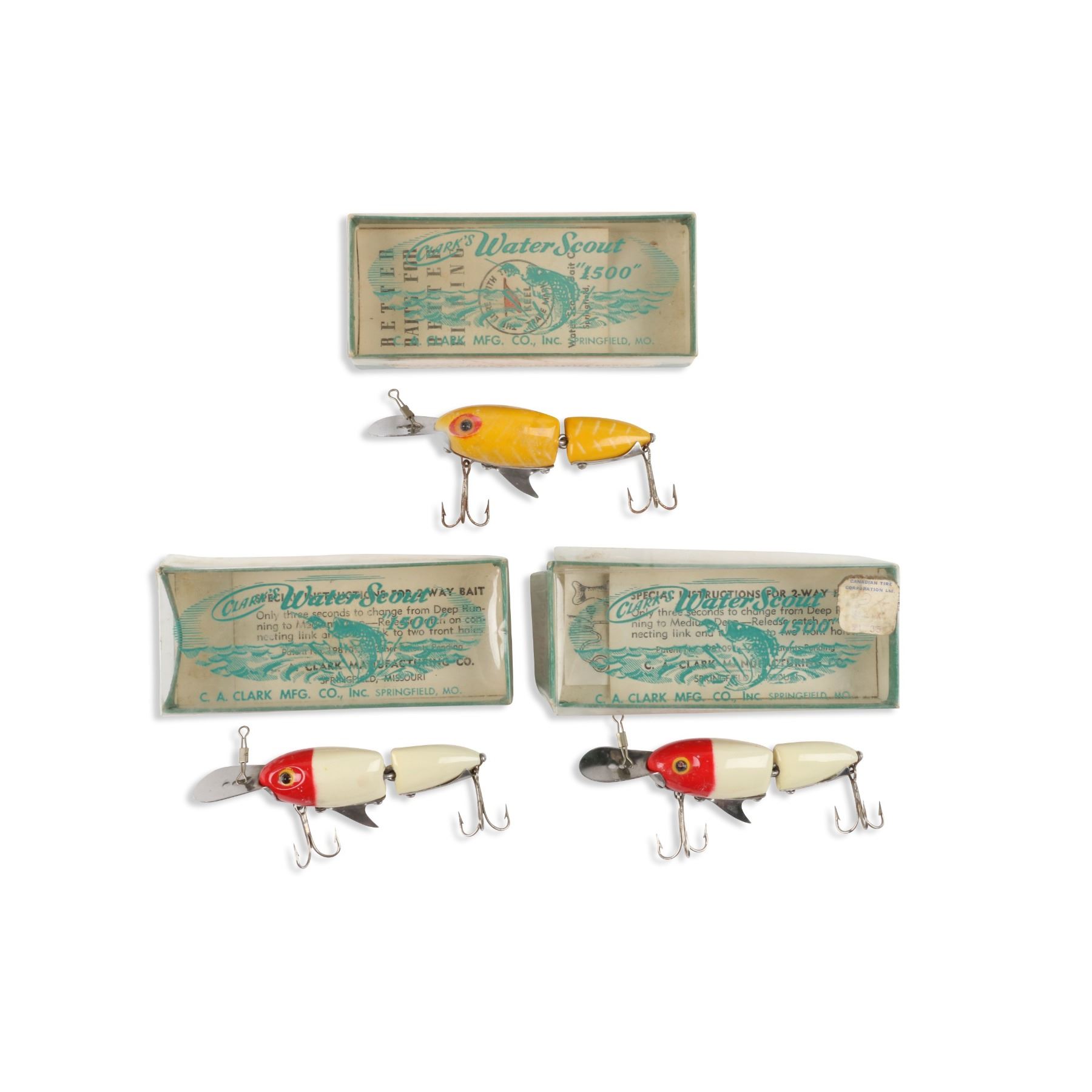 Water Scout Bait Co., United States. Boxed. Material: Mixed. Quantity: 3. Grade: VG+. 4.5" boxes Est. $100-125.
