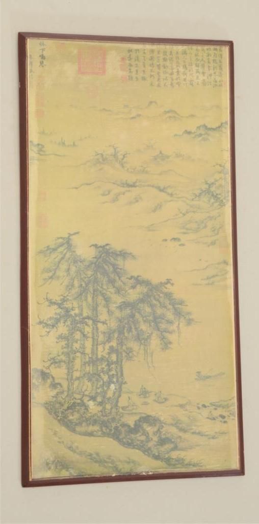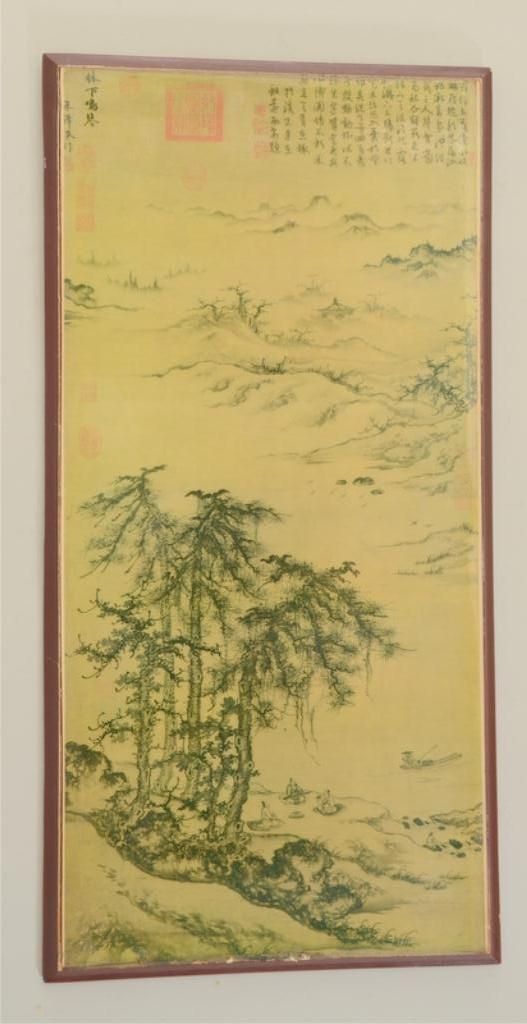 Water color oriental style measuring 18 1/2" Height 9 1/2" Width. Red chop marks, slight discoloration's and edge wear. Probably 19th century or earlier, brought from S.E. Asia by refugee and gifted to friend as a familyheirloom. Est. $100-$300