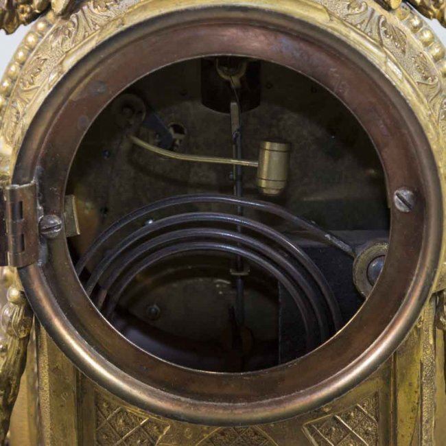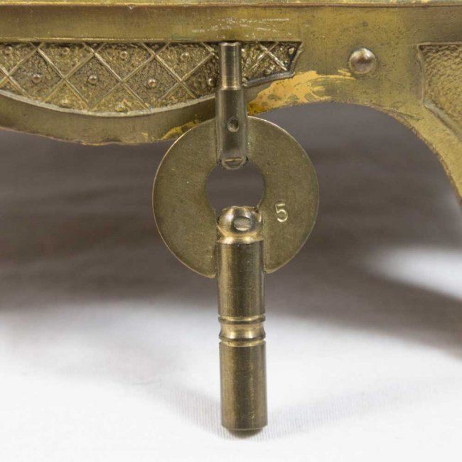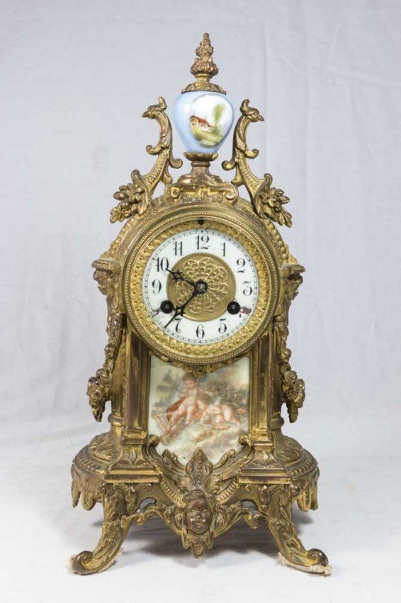 With porcelain plaques. With pendulum and key. (4155) Chips on enameling on dial.