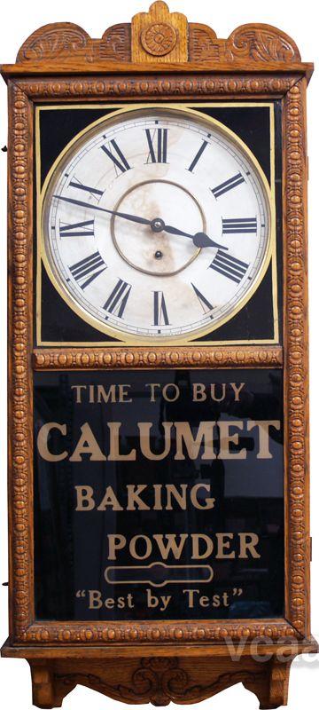 Waterbury Clock Co. Wall Mount Advertisement Clock "Calumet Baking Powder" Very Fancy Oak Trim - 16" x 38"