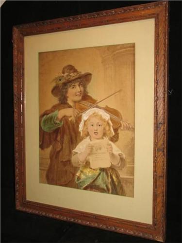 Watercolor, Italian Serenade, signed F. Duash, 19C. 17" x 22".