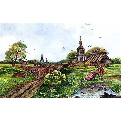<tr><td>Title:Watercolor "Old Russia. Spring in the village"</td></tr>