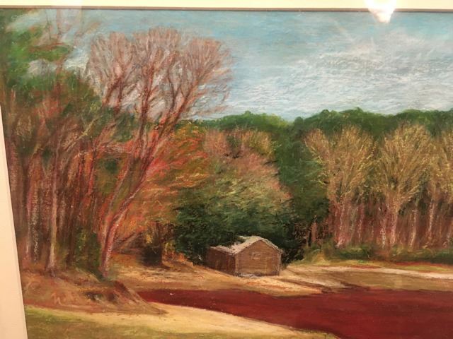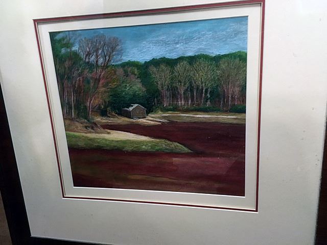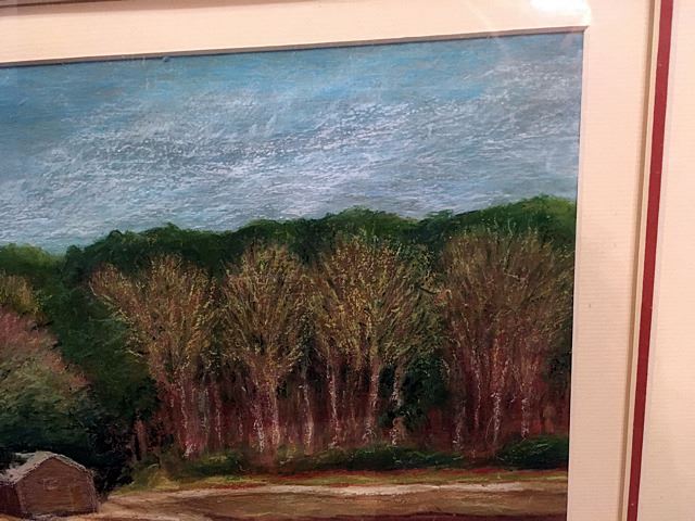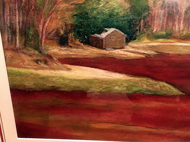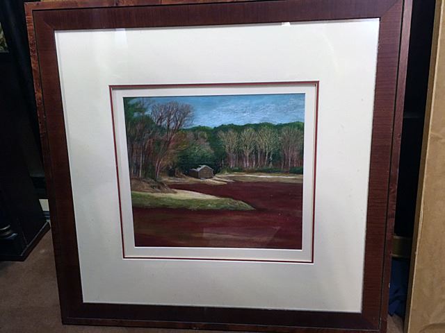 Signed watercolor painting, professionally framed and matted, under glass, landscape, measures approx 27 1/2" wide x 26 3/4" tall (frame size).