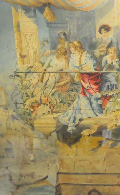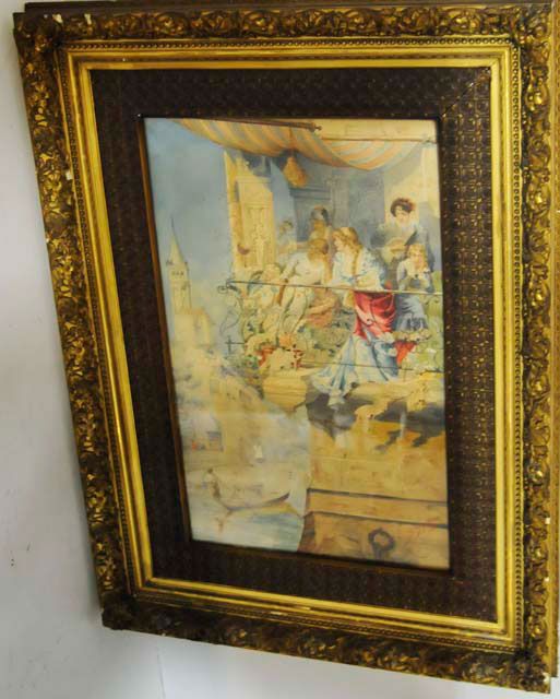 "Figures on Venetian Balcony". In a spectacular 19th c. frame. American dated 1882. Approx. 36" x 22" image. From a Scarsdale, NY estate. Please read our terms of sale.