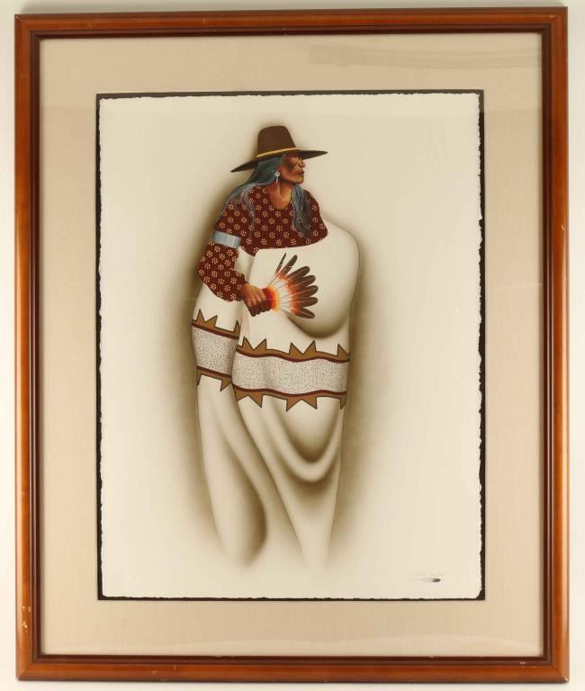Original framed watercolor painting signed Robert Redbird. lower right entitled '49 Singers' with Certificate of Authenticity signed 'Carole Rosenblatt' Gallery Director, Artistic Gallery of Scottsdale, AZ. Approximately 41"x33" overall and dated 1985.