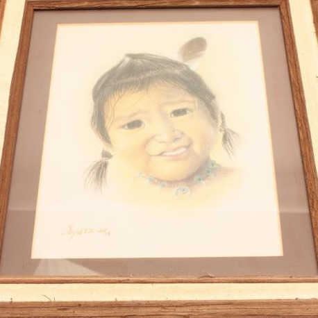 Watercolor of Indian Girl signed L.L. Yazzi (1978) with tepee mark; approximately 17” x 15”. From the estate of Elmer E. Taylor. Est.: $150-$300.