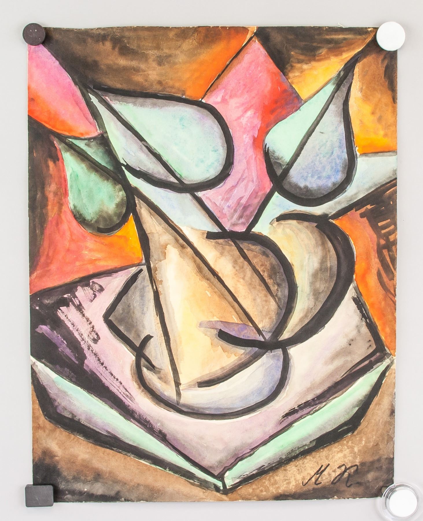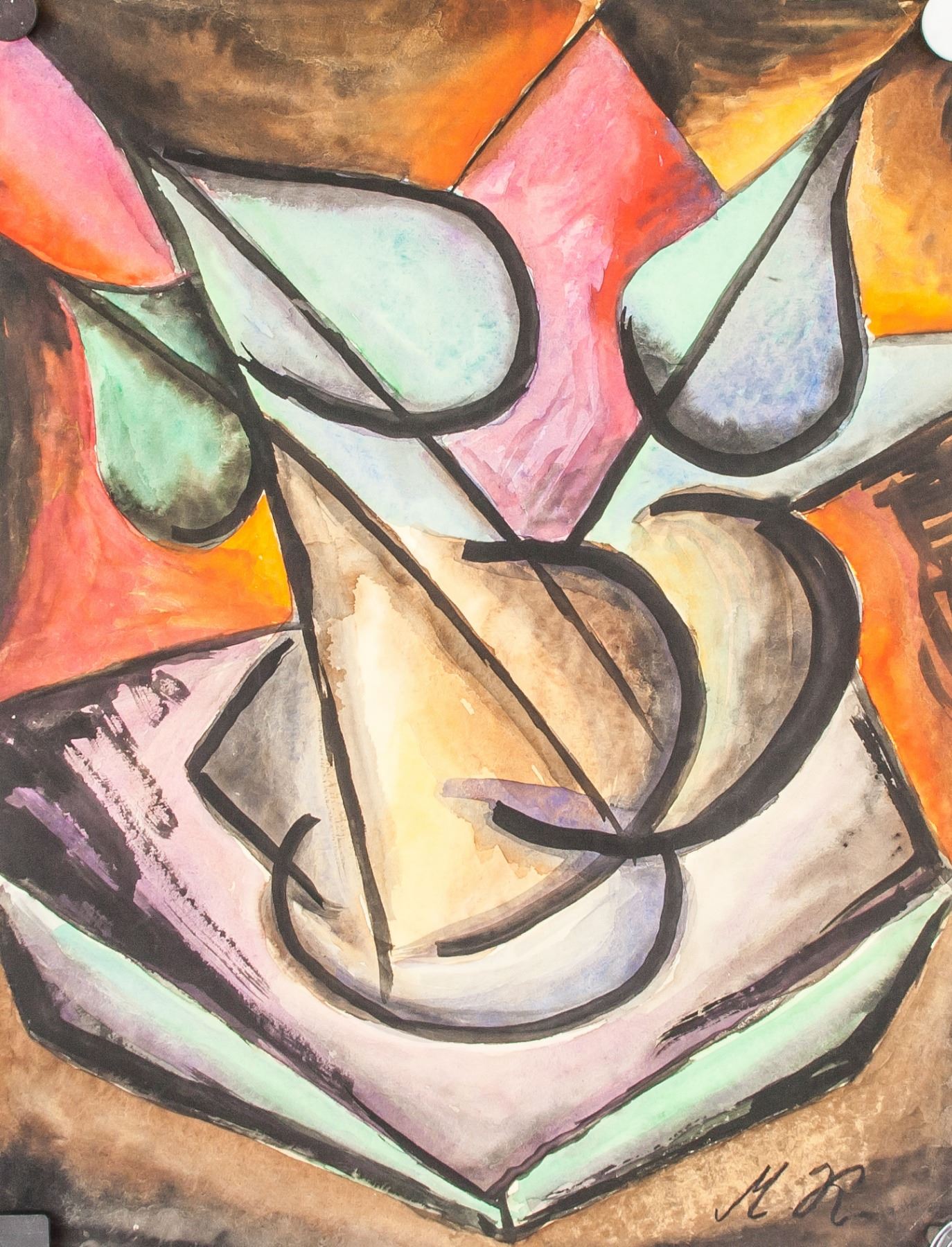 Abstract expressionist watercolor on paper painting featuring flowers. SIgned with monogram on lower right corner. 16.5 x 12.6 inch (42 x 32 cm). PROVENANCE: Private collection (Kiev, Ukraine).