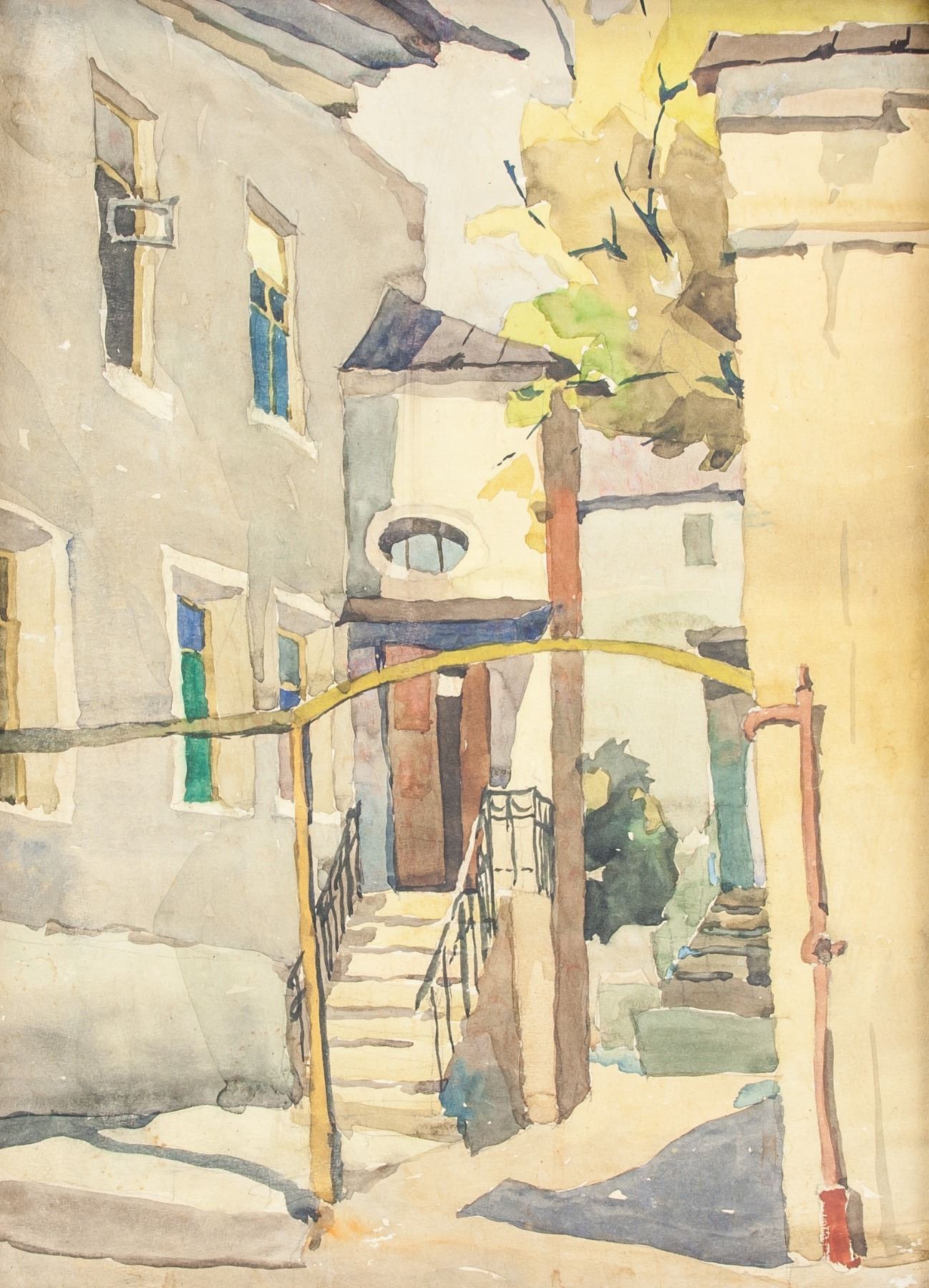 Watercolor on paper, featuring town scene. Unknown artist and unsigned. 15.35 x 11.22 inch (39 x 28.5 cm). PROVENANCE: Private collection (Kiev, Ukraine)