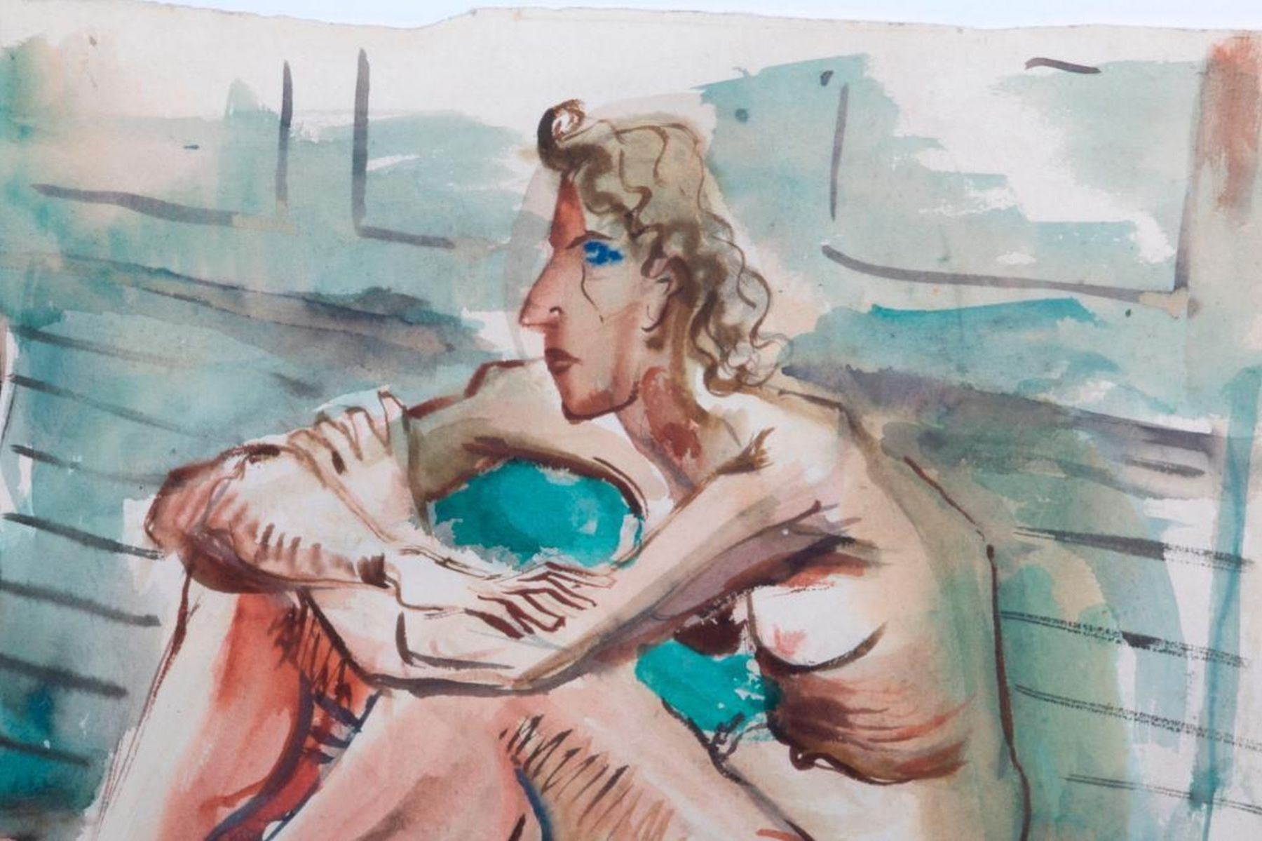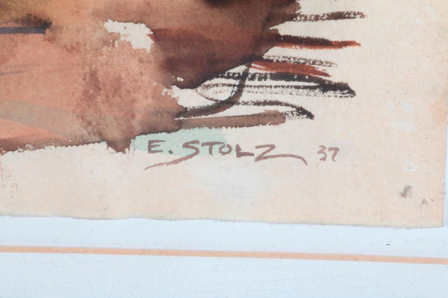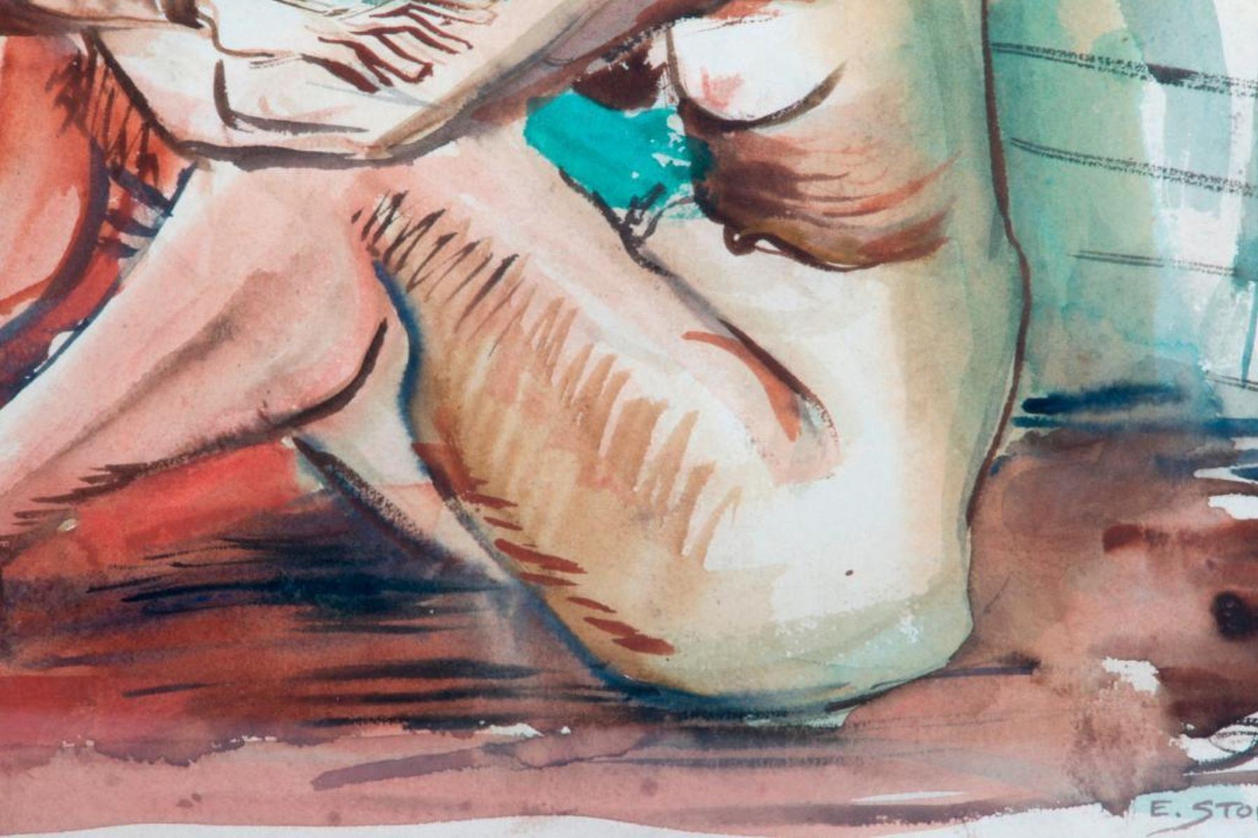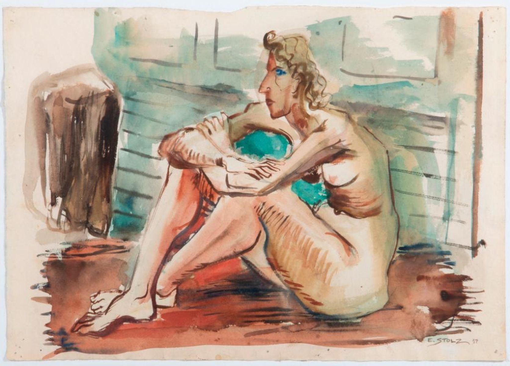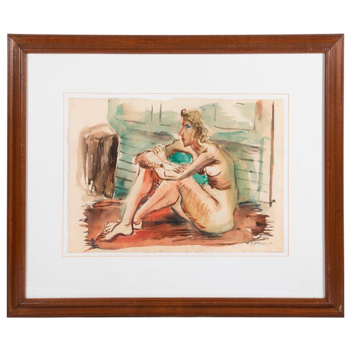 Watercolor on paper of nude portrait possibly of Martha Graham by Ernst Stoltz (1901-1989) signed lower right and dated '37. Frame: 20 ½ inches high x 24 ½. Image: 11 inches high x 15 ½. Condition good.