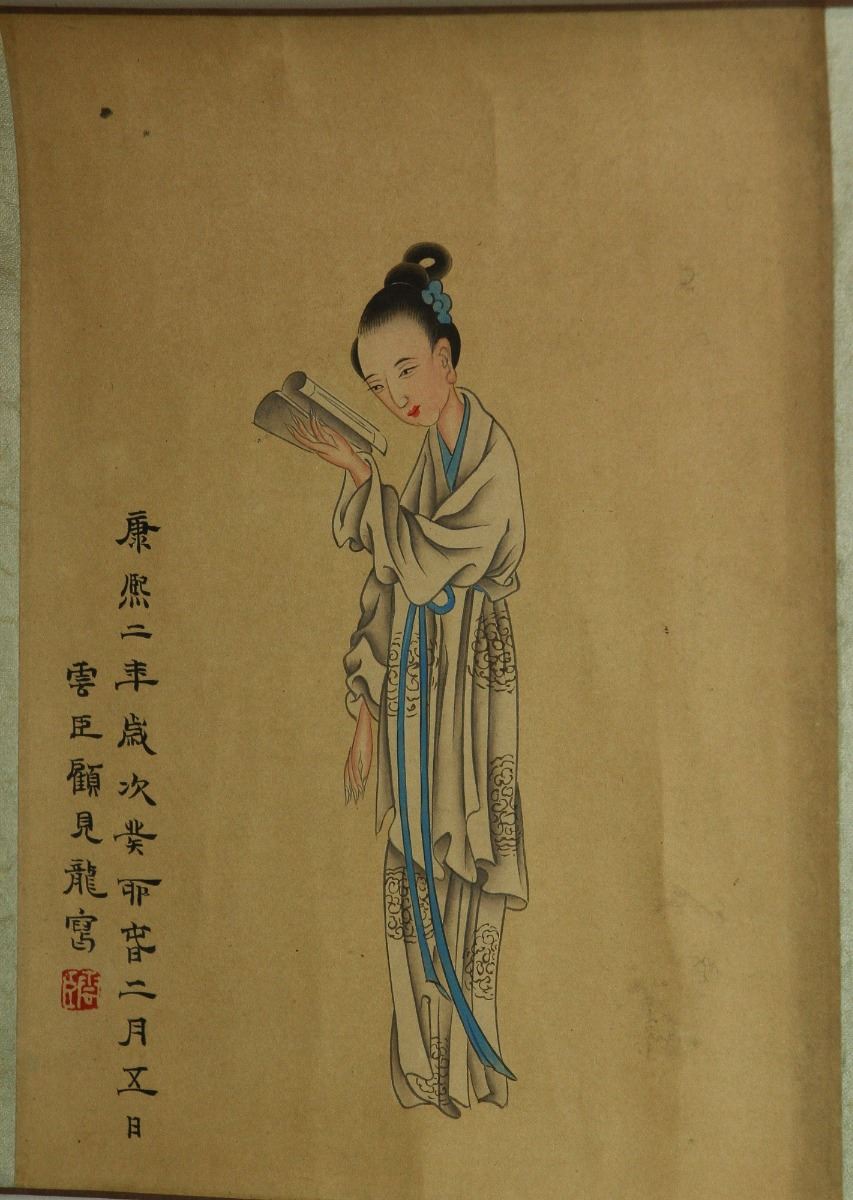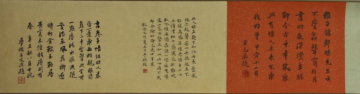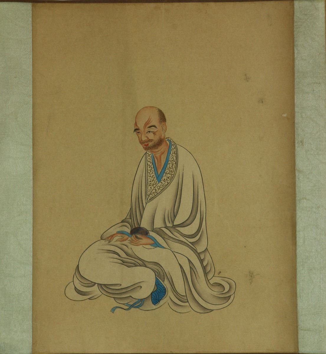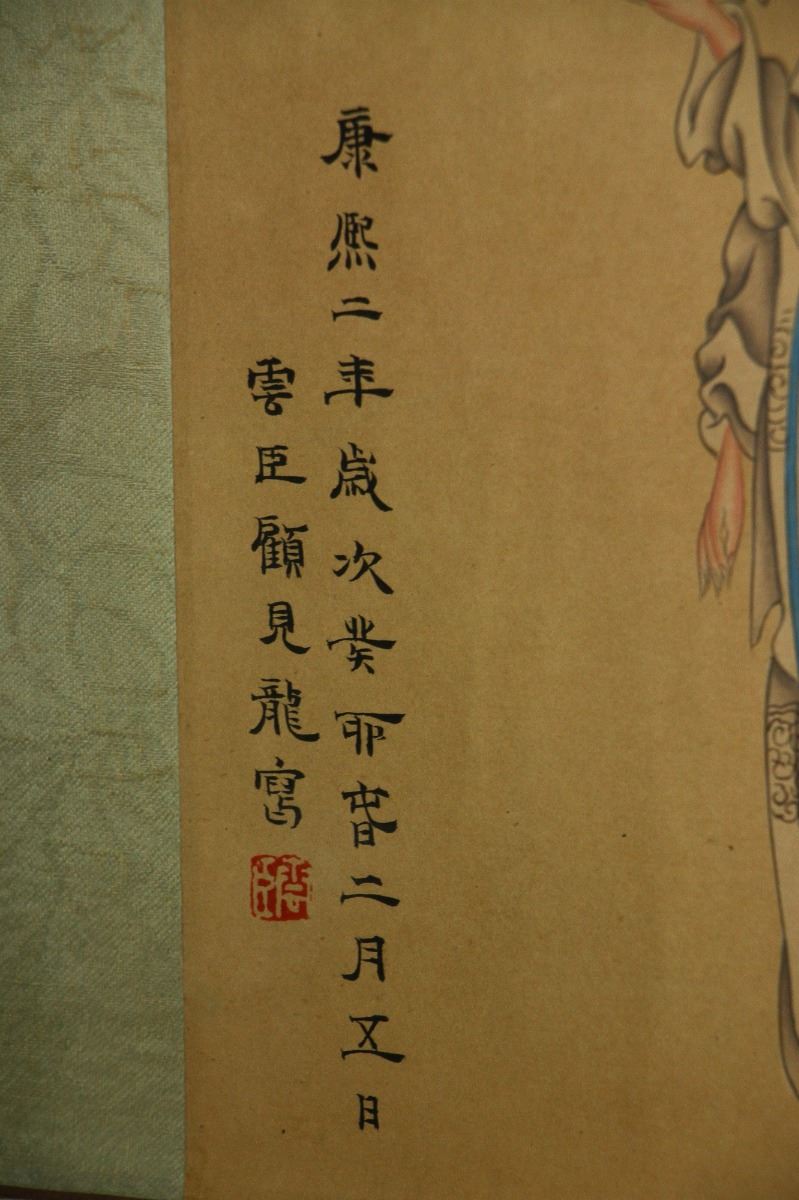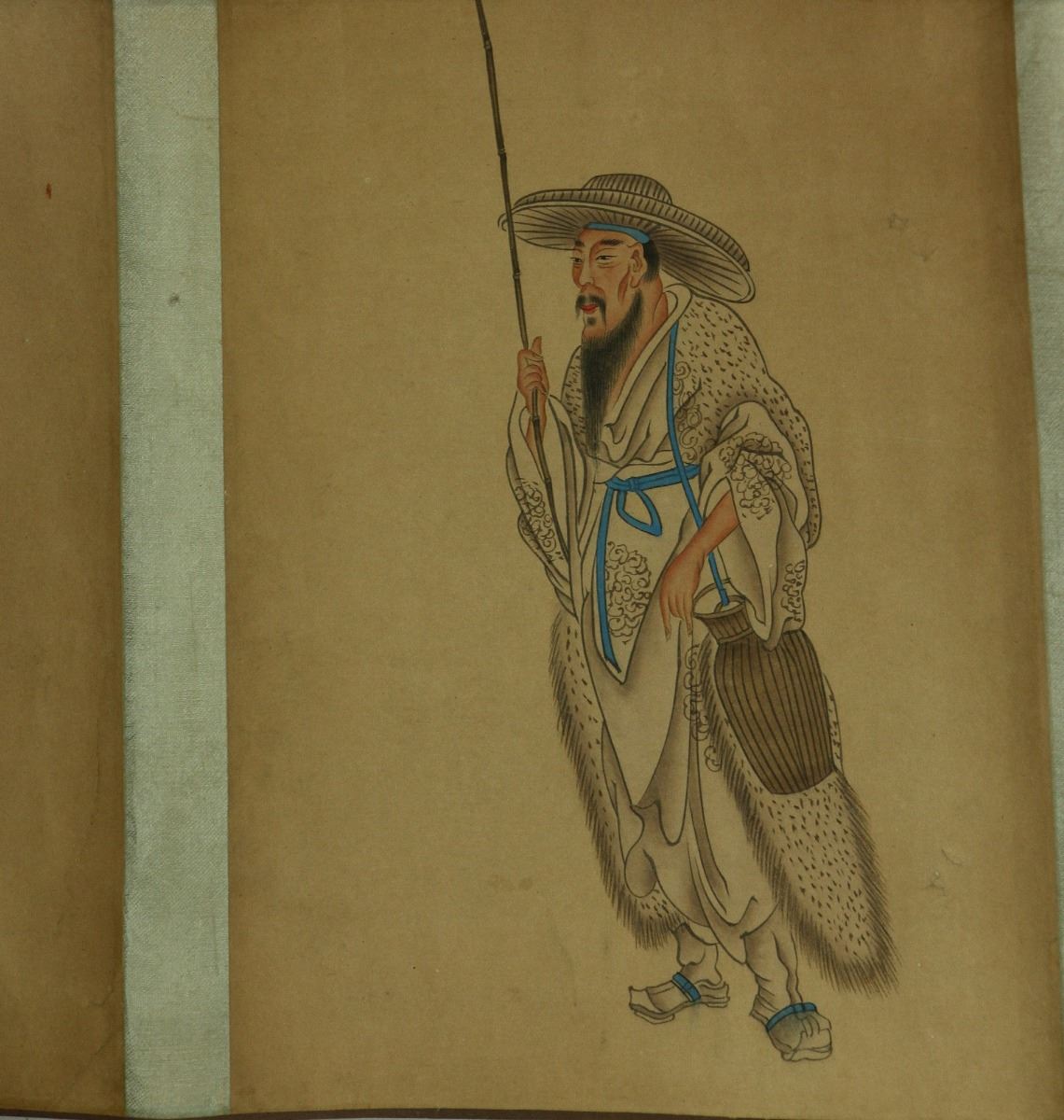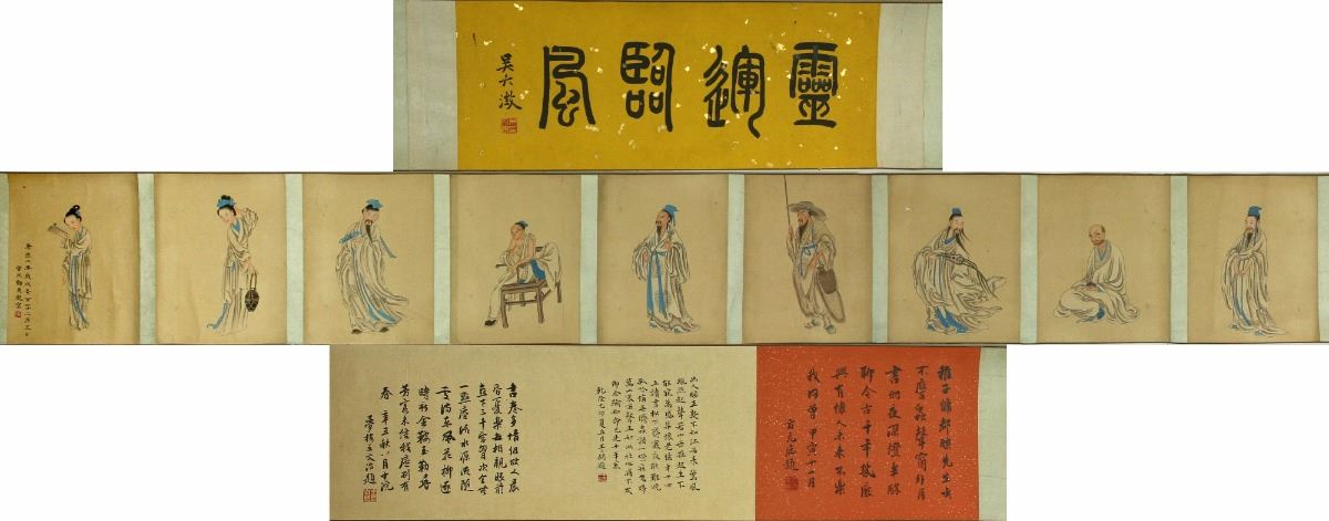 Arhat and immortal figures; Chinese ink and watercolour on paper; hand scroll; signed Gu Jianlong and inscribed with one artist seal; 27 cm × 200 cm