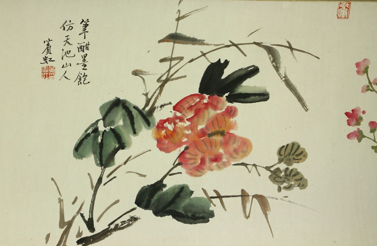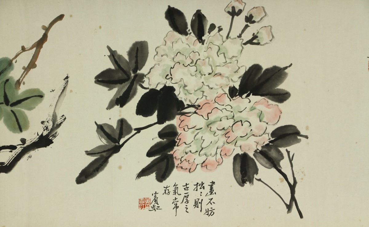 Floral sprays; Chinese ink and watercolour on paper; hand scroll; signed Huang Binhong and inscribed with two artist seals; 40 cm × 245 cm