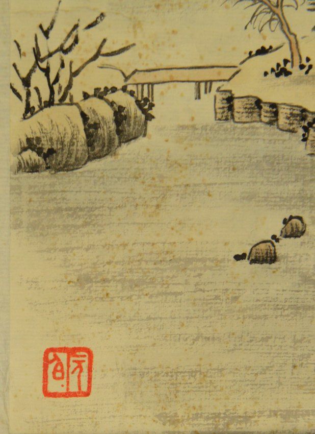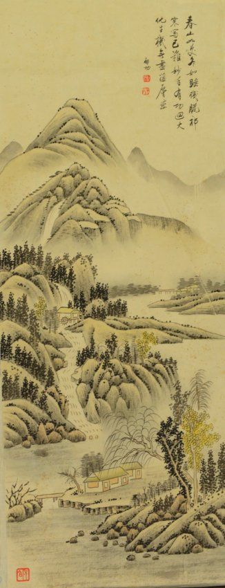 Watercolour Painting of Landscape Signed Qi Gong