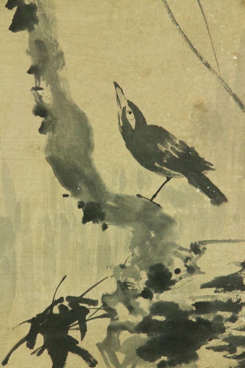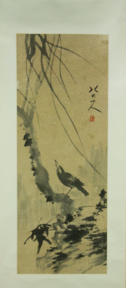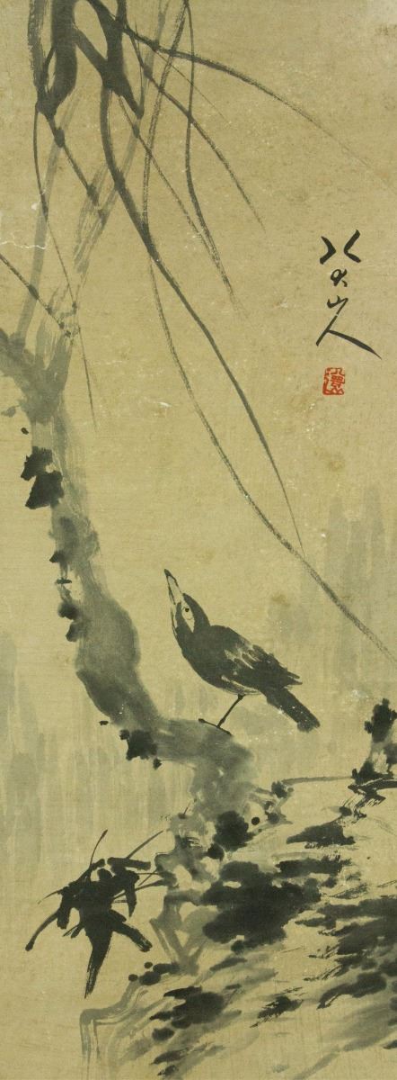 Crow under willow tree; Chinese ink on paper; signed Bada Shanren and inscribed with one artist seal; 83.5 cm x 33.5 cm