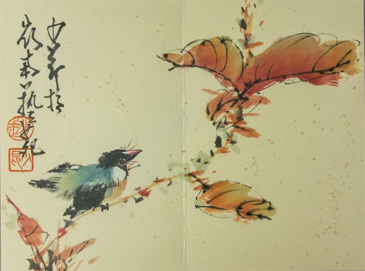 Birds perching on flower branches; Chinese ink and watercolour on paper; seven-page booklet; signed Zhao Shaoang and inscribed with two artist seals; 24 cm x 16cm