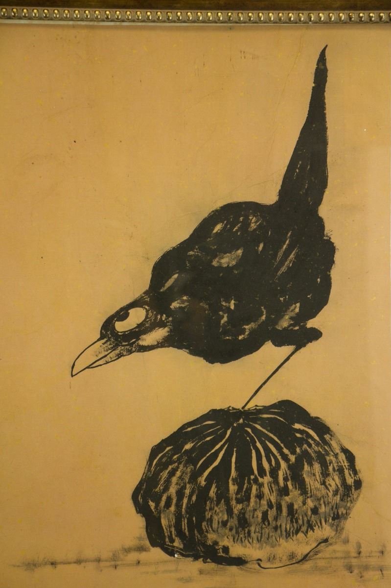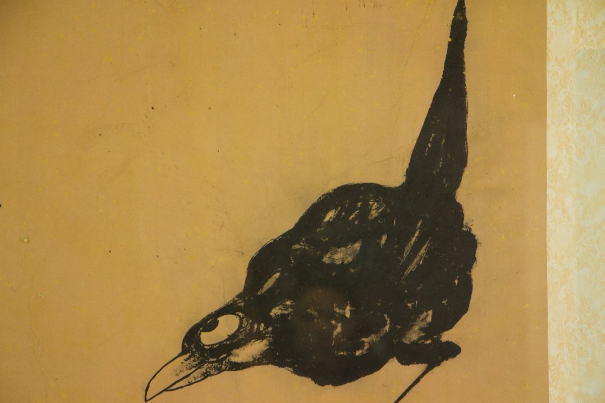 Crow standing on a rock; Chinese ink on paper with frame; signed Bada Shanren and inscribed with two artist seals; 66 cm × 90 cm