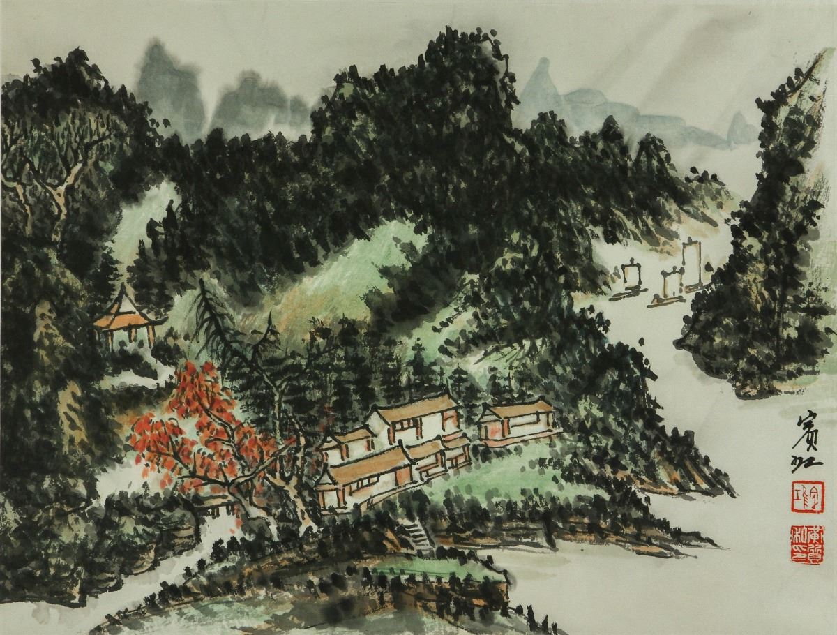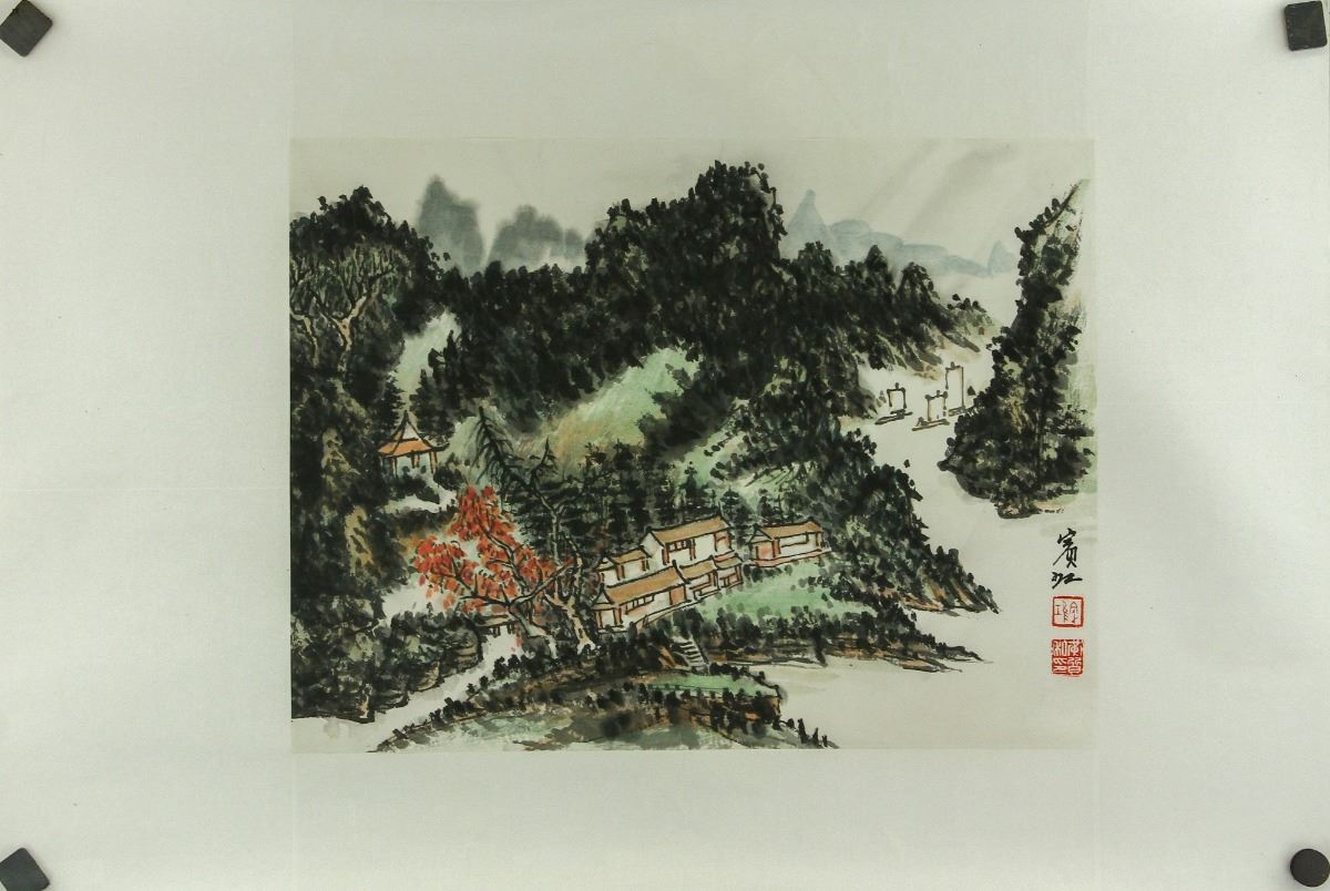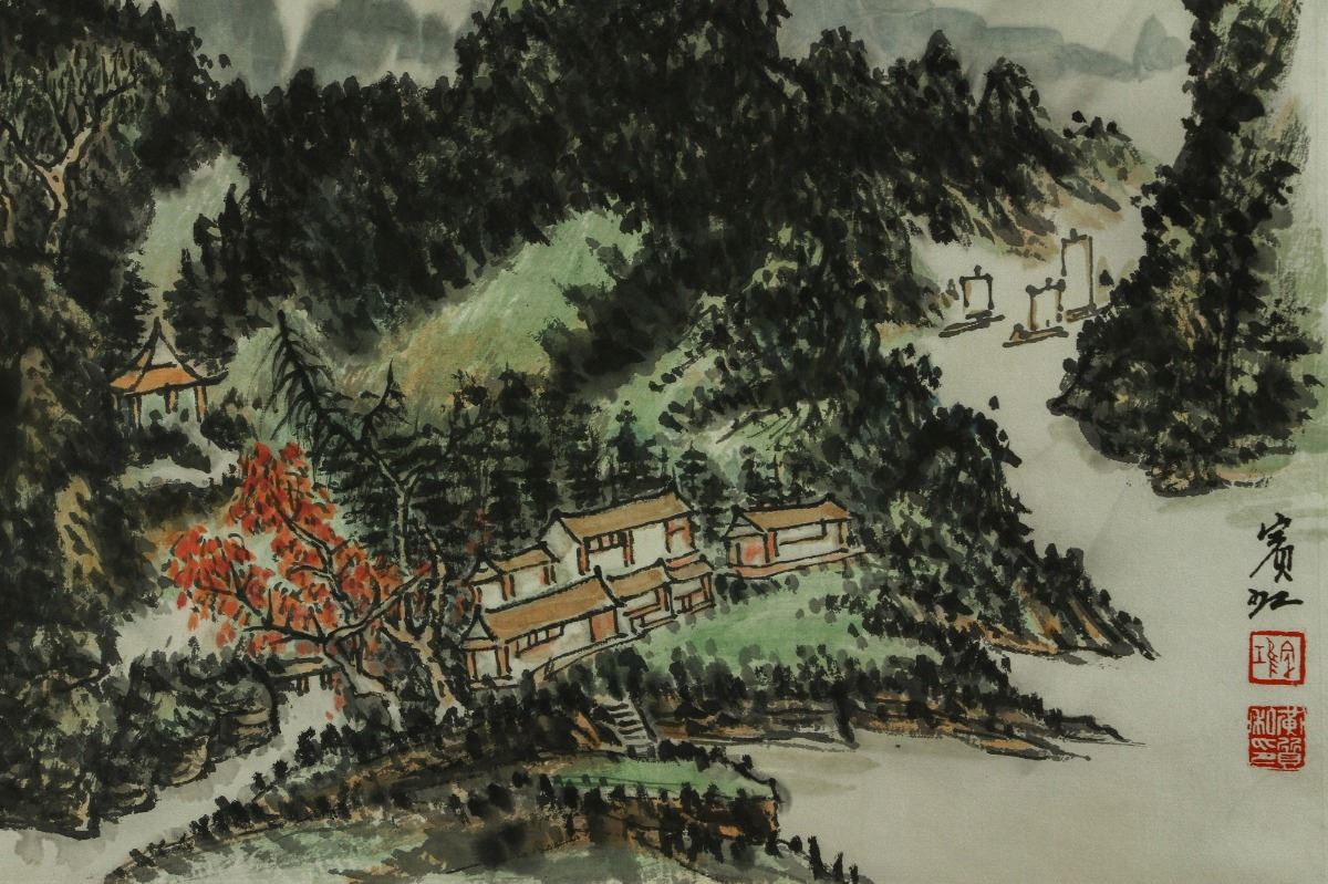 Riverside landscape; Chinese ink and watercolour on paper; hanging scroll; signed Huang Binghong and inscribed with two artist seals; 48 cm × 73 cm