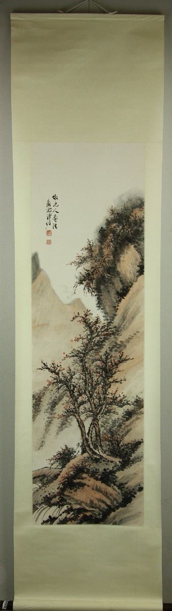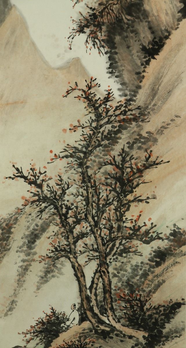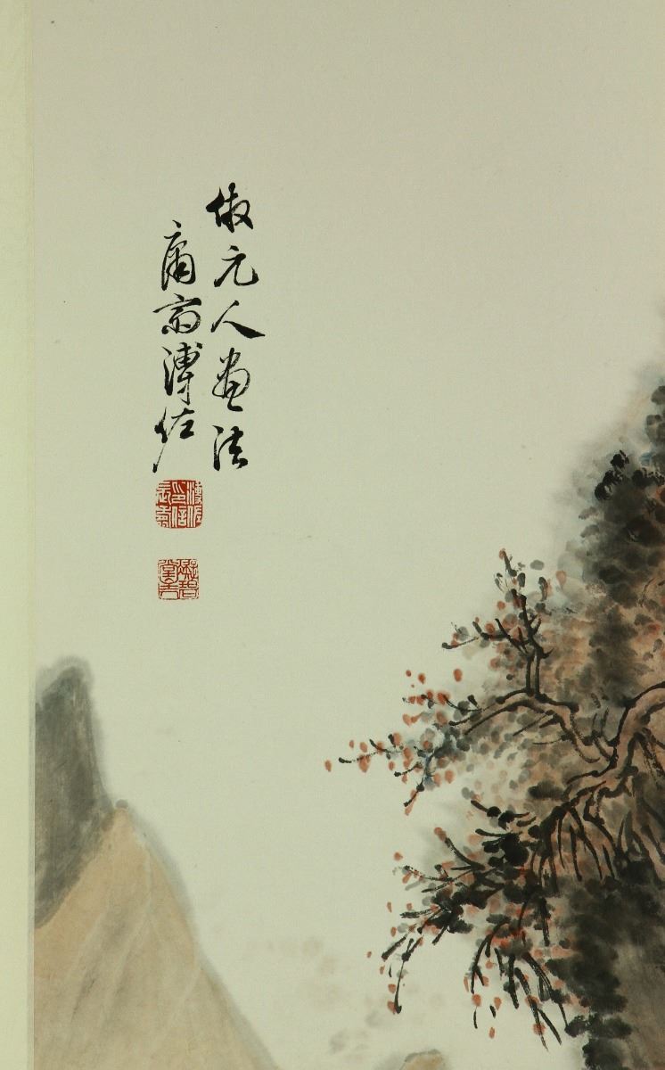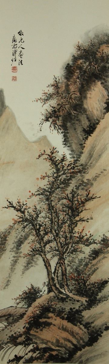 Landscape; Chinese ink and watercolour on paper; hanging scroll; signed Pu Zuo and inscribed with two artist seals; 187 cm × 46 cm