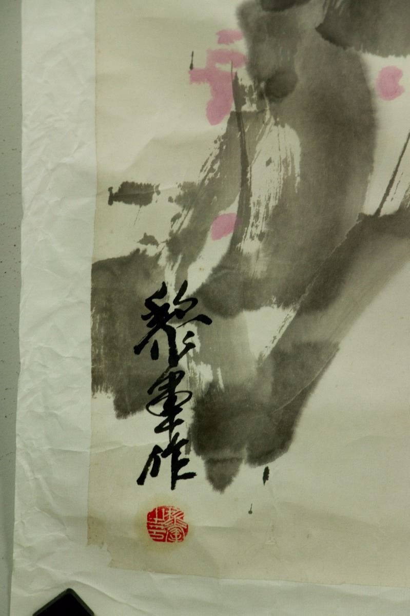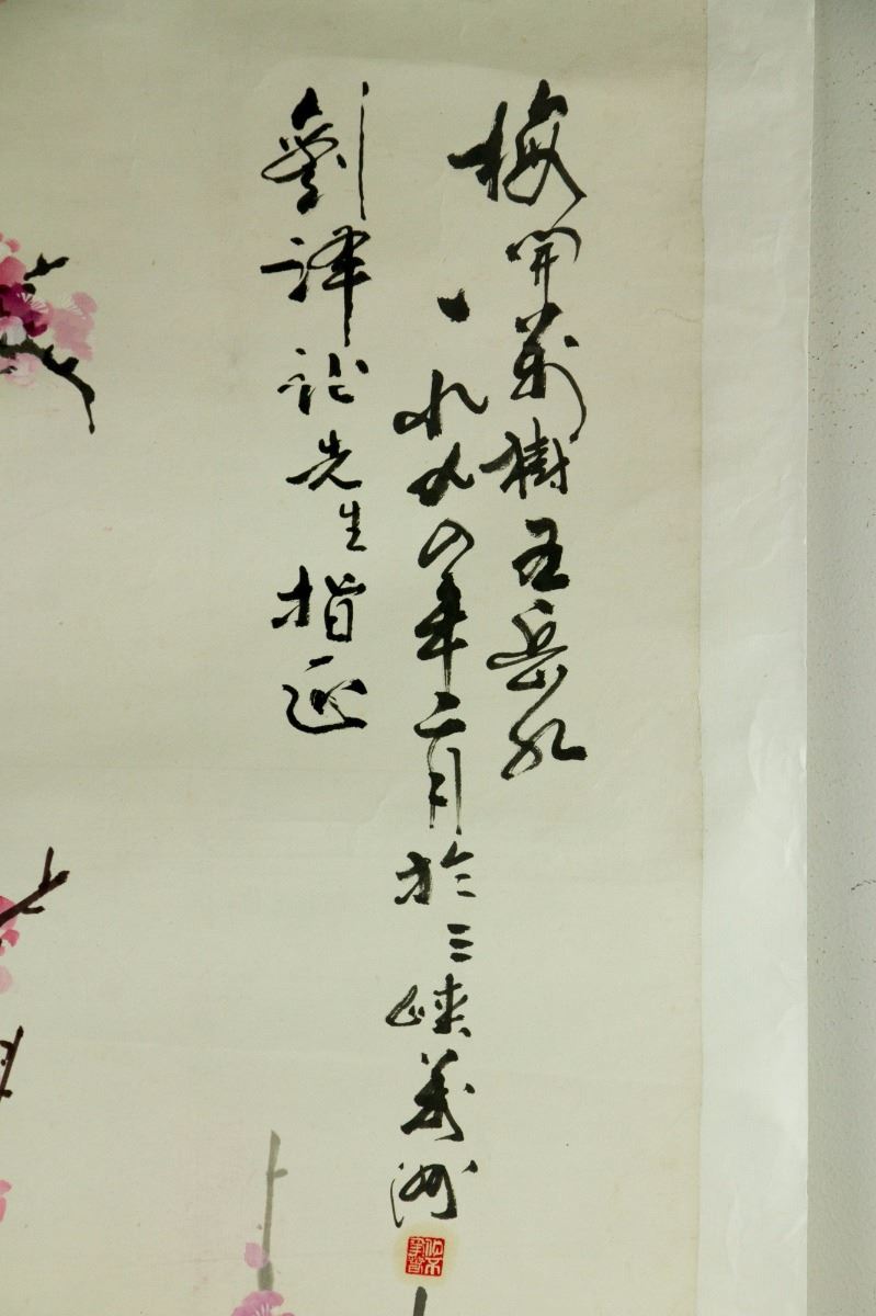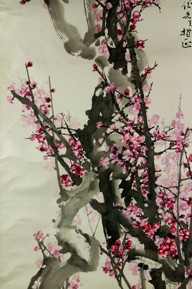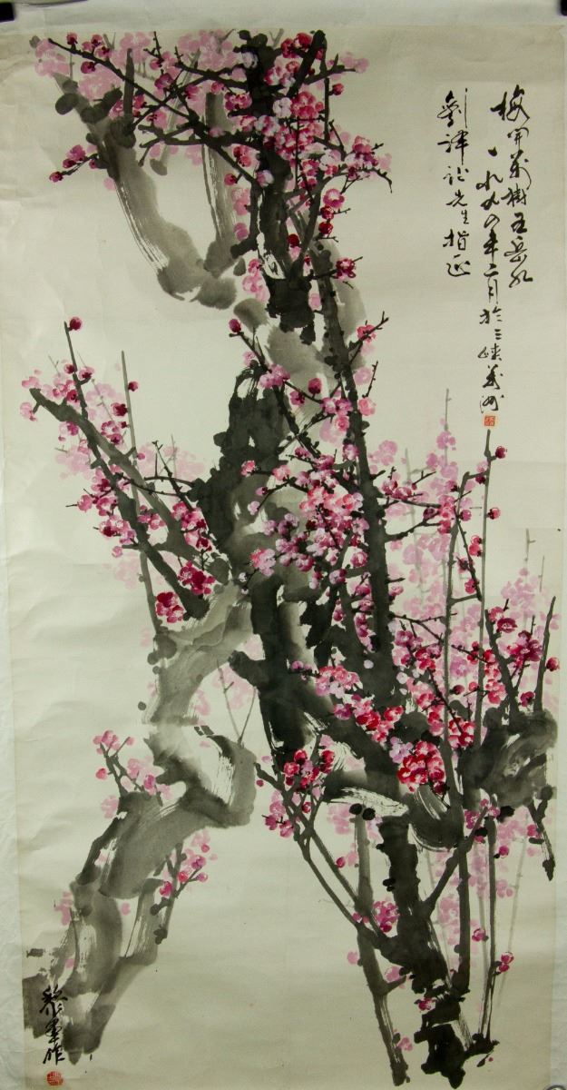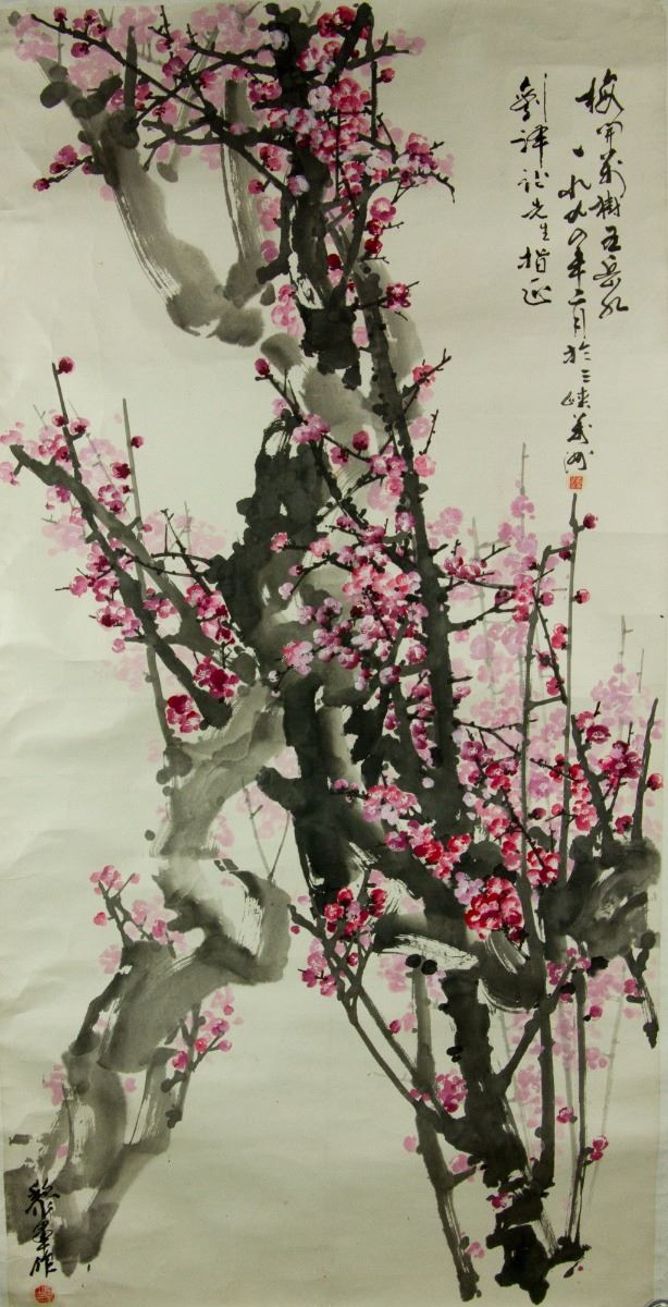 Plum blossom branches; Chinese ink and watercolour on paper; signed Li Jun and inscribed with two artist seals; 141 cm × 75 cm