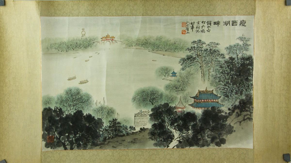 Scenery besides West Lake; Chinese ink and watercolour on paper; signed Qian Songyan and inscribed with two artist seals; 42 cm x 66 cm
