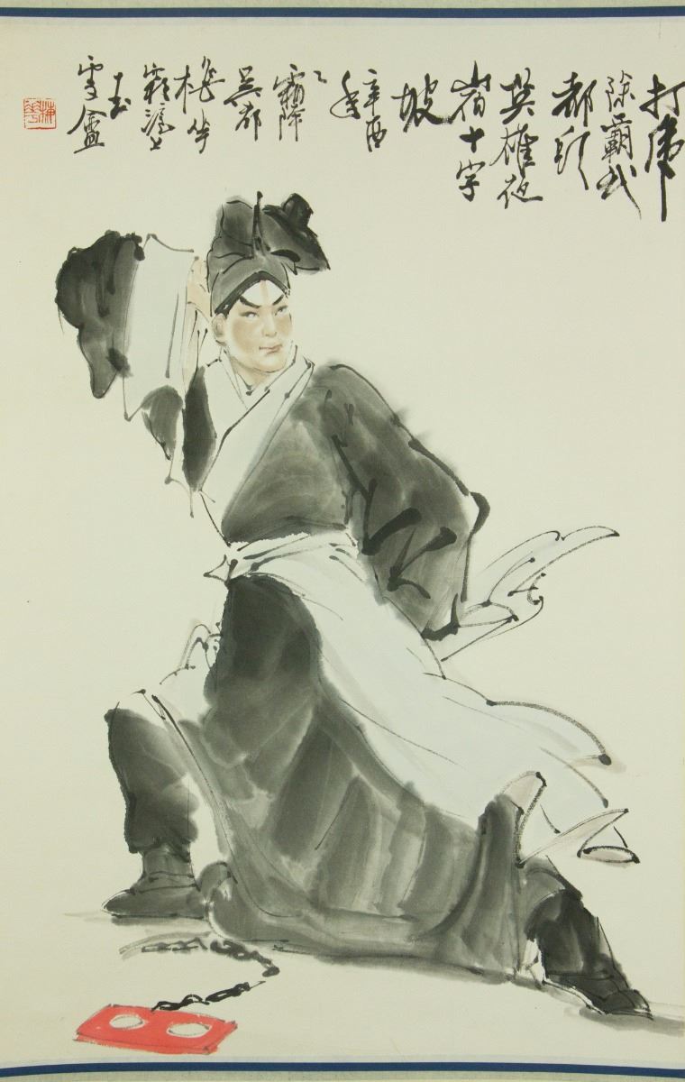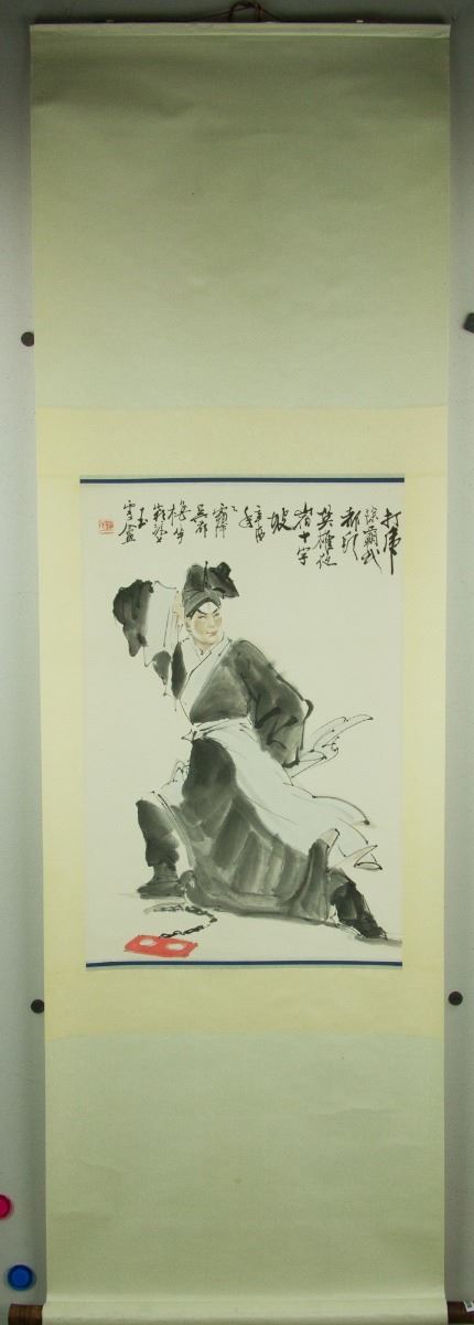 Portrait of Wu Song (fictional character in Water Margin); Chinese ink and watercolour on paper; hanging scroll; signed Chen Banding and inscribed with one artist seal; 217 cm × 67 cm