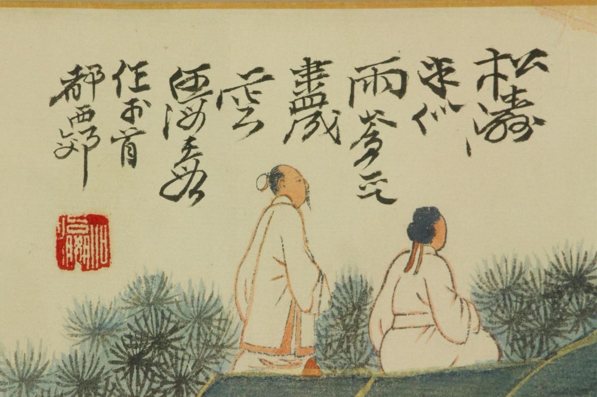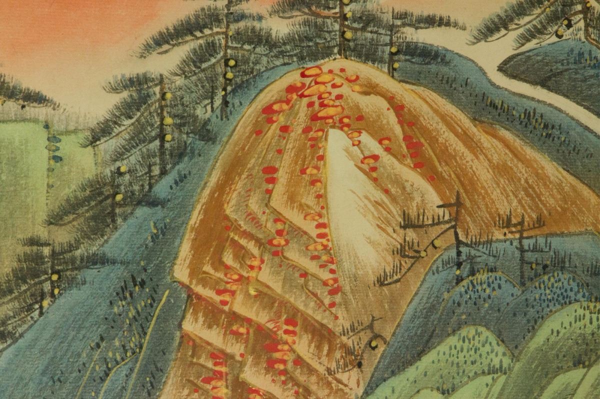 Mountainous landscape; Chinese ink and watercolour on paper; hand scroll; signed He Haixia and inscribed with one artist seal; 34 cm x 347 cm
