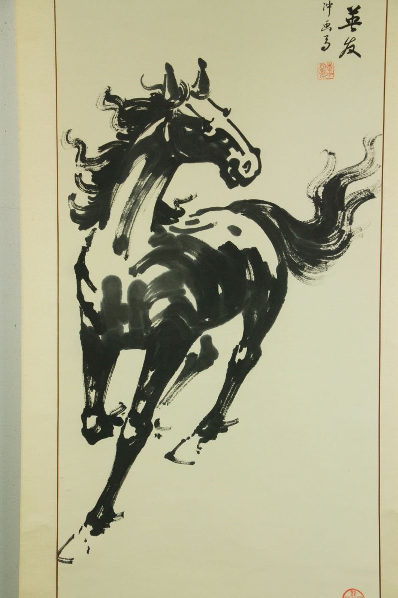 Running horse; Chinese ink on paper; hanging scroll; signed Huang Chong and inscribed with four artist seals; 152 cm × 59 cm