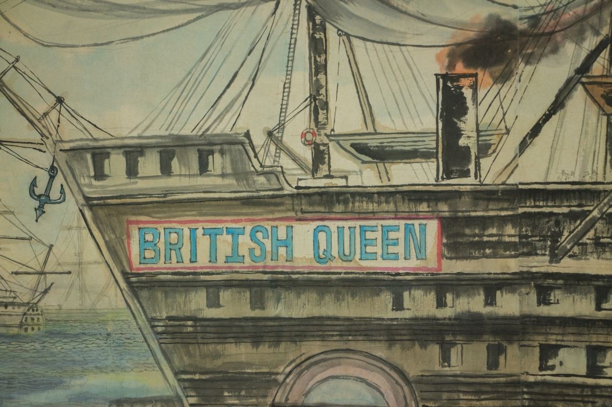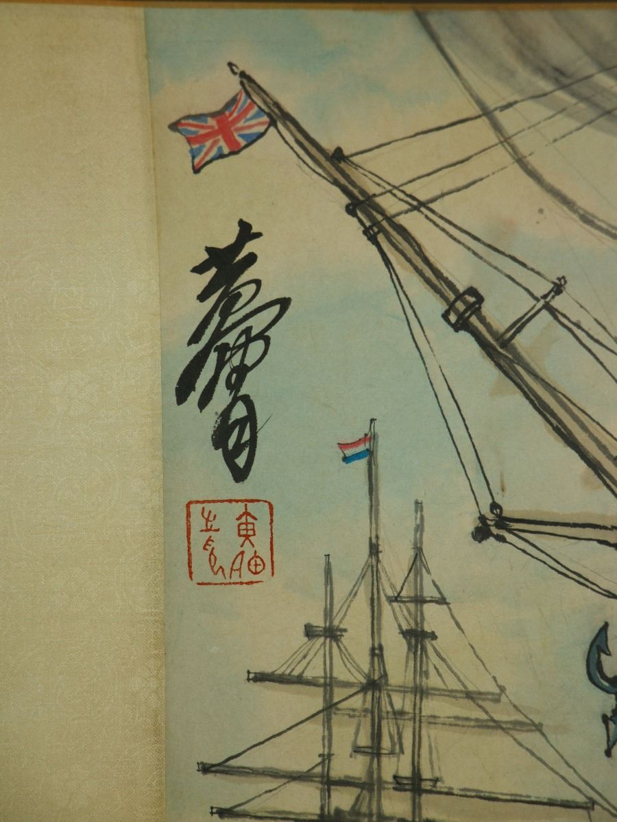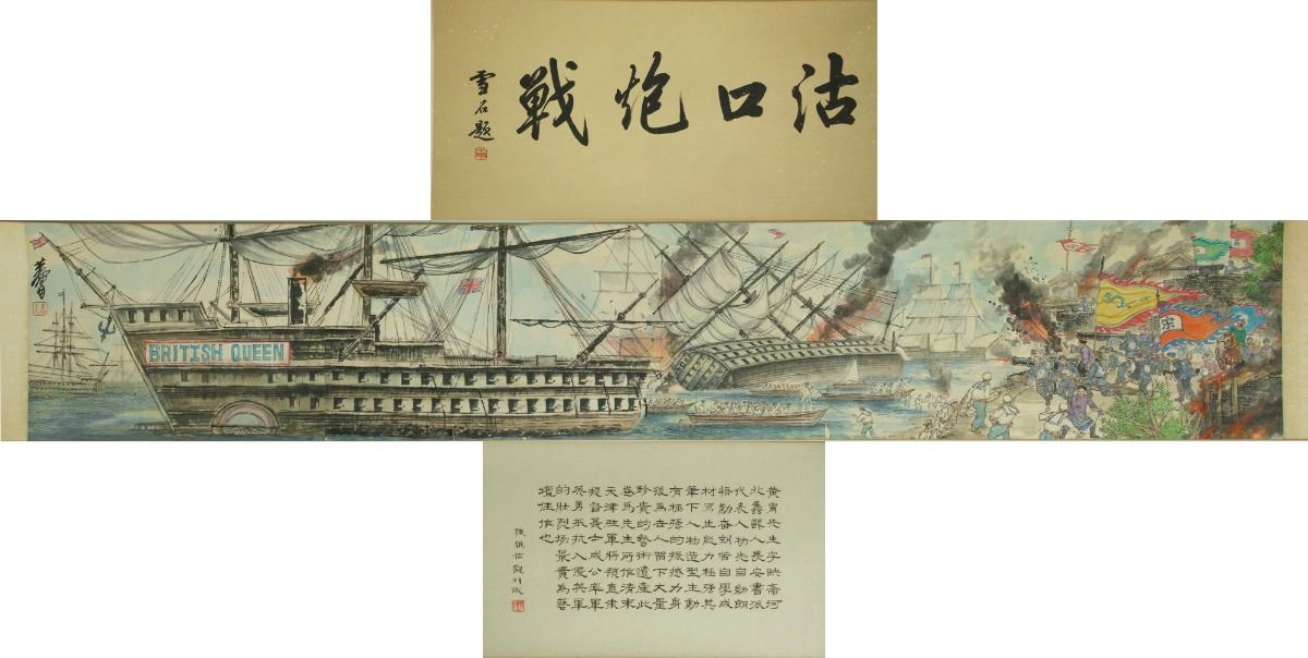 War scenery at harbour; Chinese ink and watercolour on paper; hand scroll; signed Huang Zhou and inscribed with one artist seal; 33.5 cm ? 184 cm