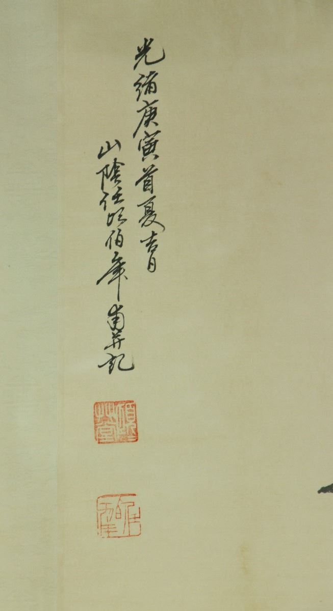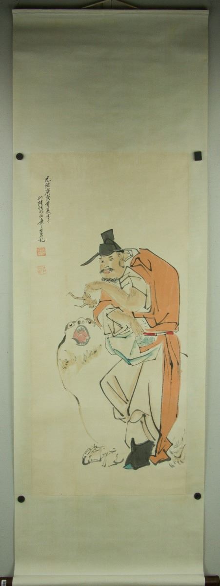 Scholar figures; Chinese ink and watercolour on paper; hanging scroll; signed Ren Bainian and inscribed with two artist seals; 158 cm × 54 cm