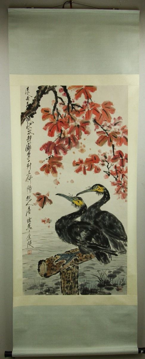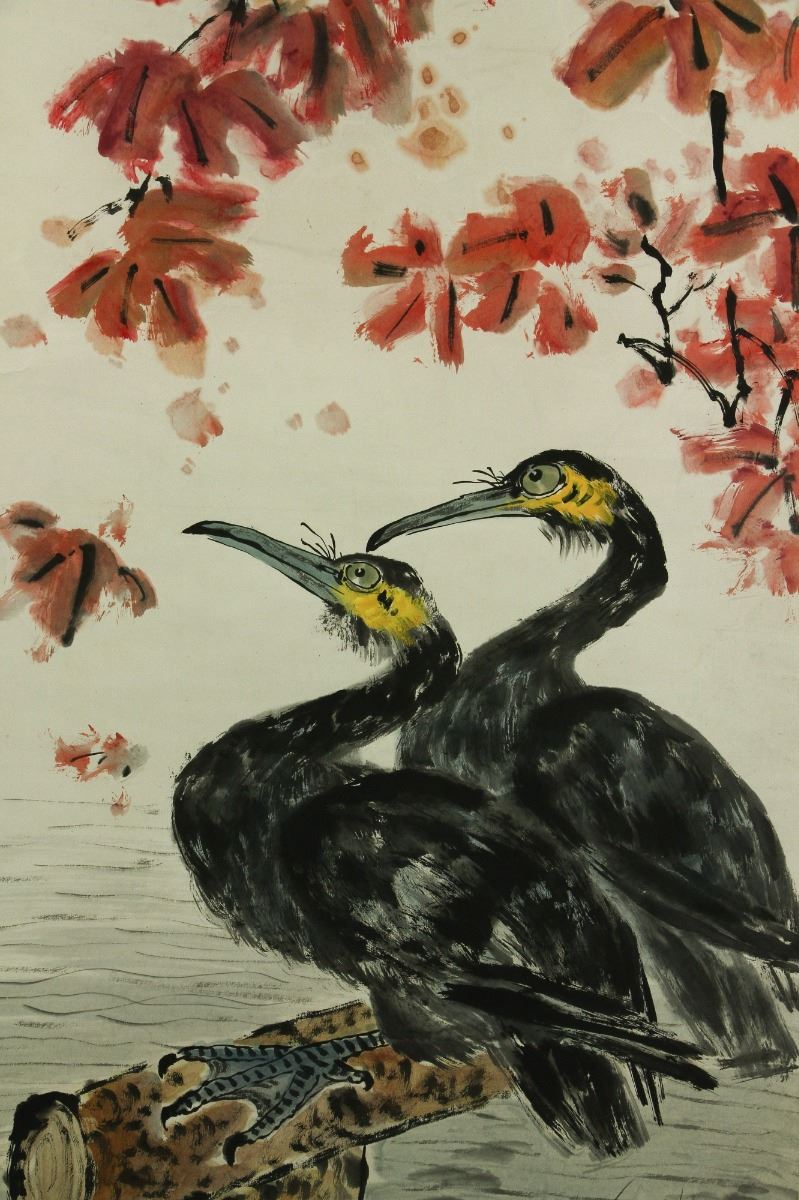Cormorants at riverside; Chinese ink and watercolour on paper; hanging scroll; signed Tang Yun and inscribed with two artist seals;