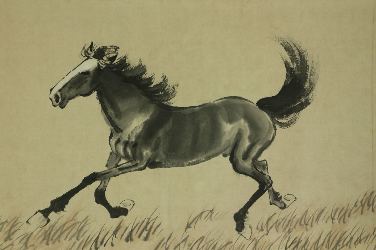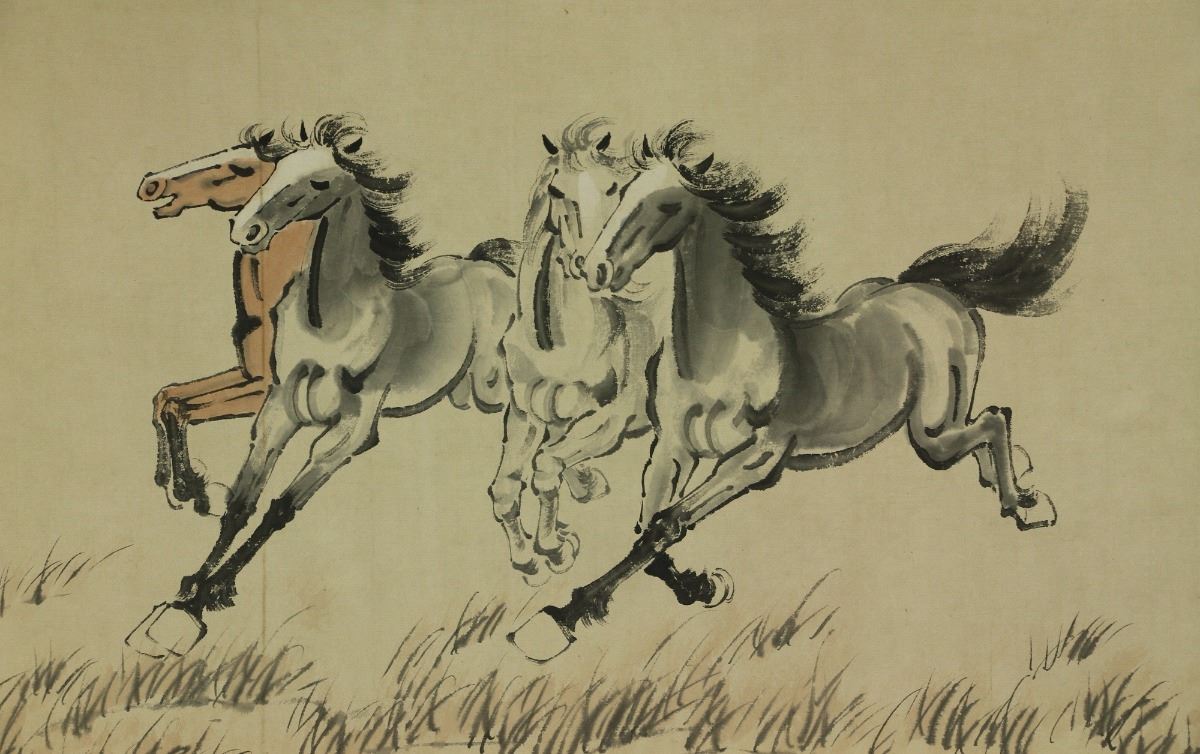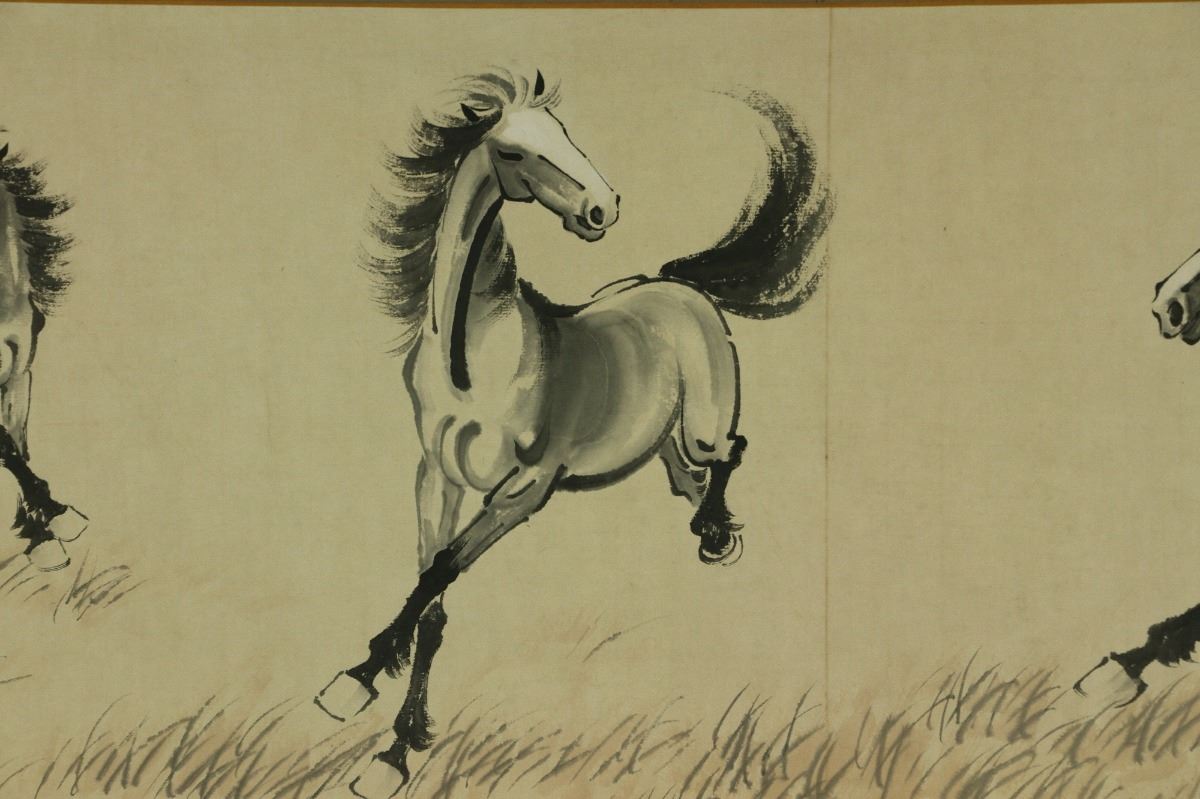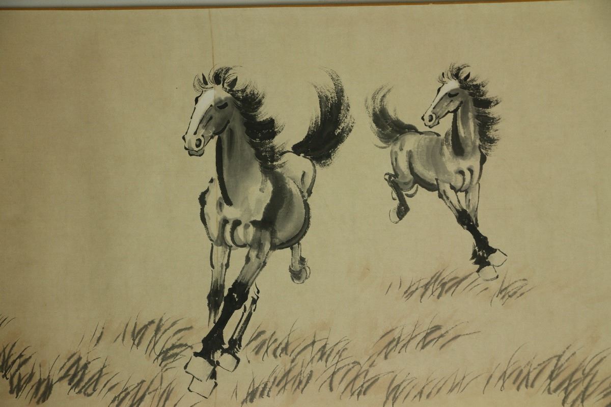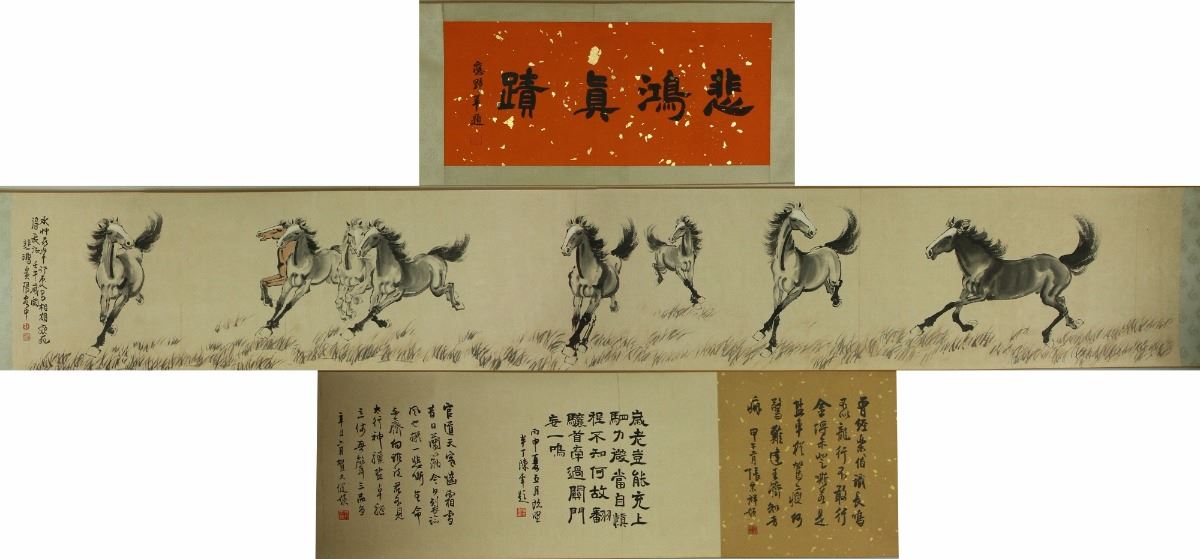 Running horses; Chinese ink and watercolour on paper; hand scroll; signed Xu Beihong and inscribed with two artist seals; 38 cm ? 245 cm