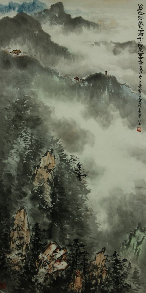 Landscape; Chinese ink and watercolour on paper; hanging scroll; signed Ying Yeping and inscribed with two artist seals; 94 cm × 48 cm