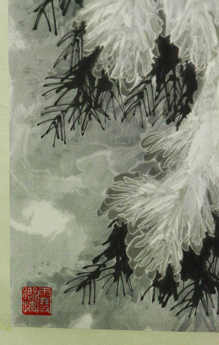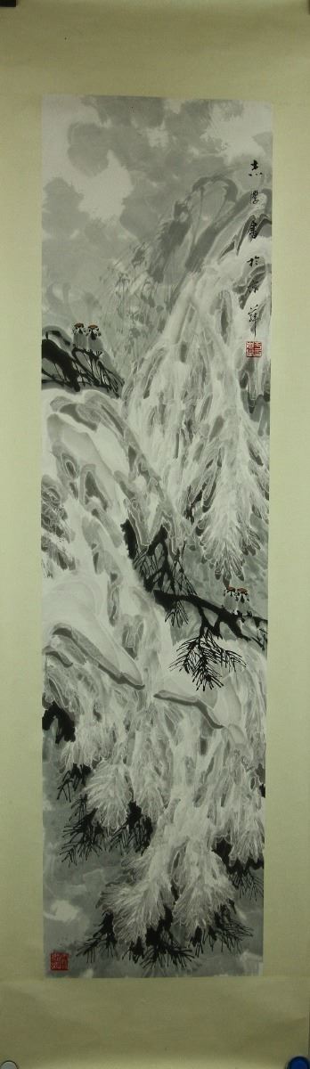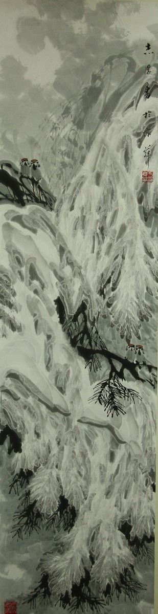 Winter landscape; Chinese ink and watercolour on paper; signed Yu Zhixue and inscribed with two artist seals; 169 cm × 50 cm