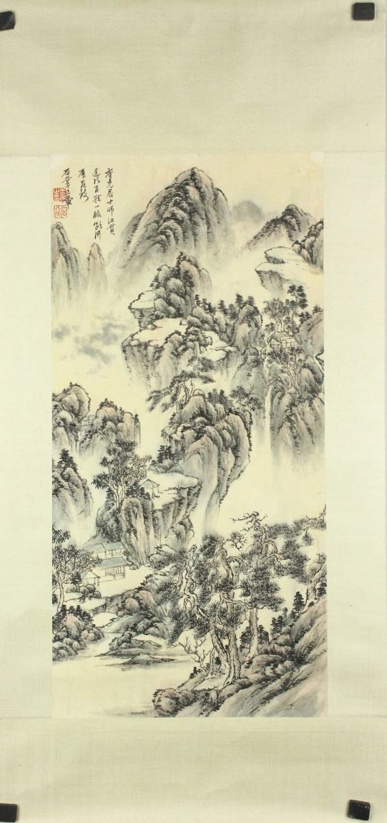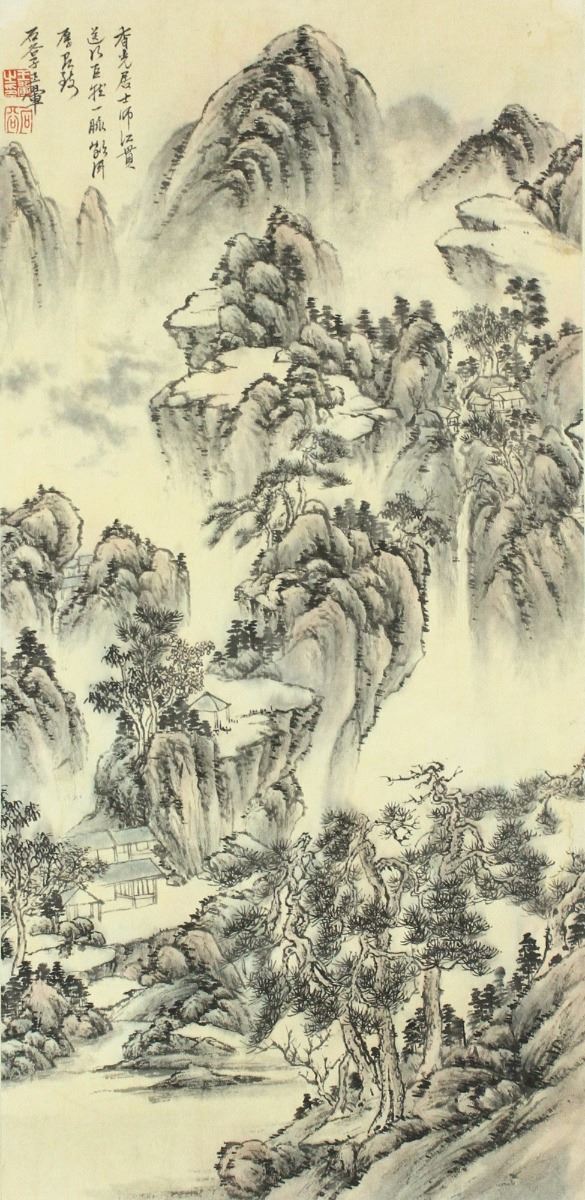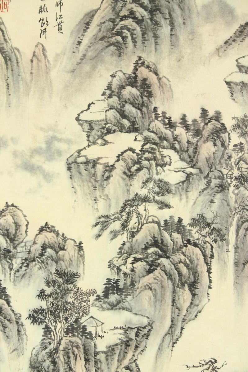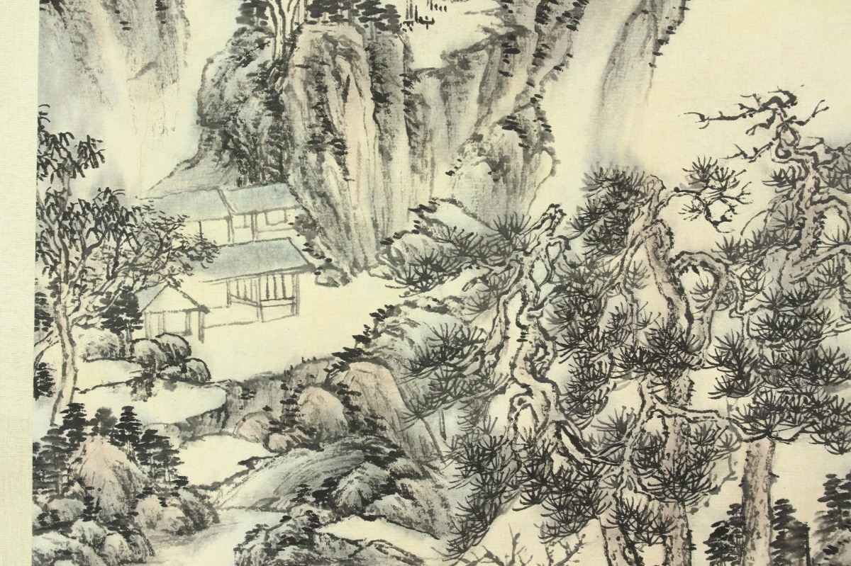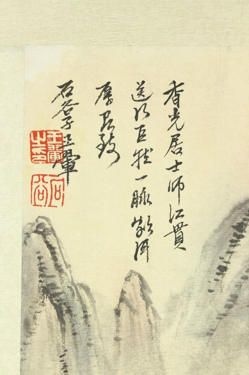 Landscape; Chinese ink on paper; signed Wang Hui and inscribed with two artist seals; H: 70 cm, W: 33 cm