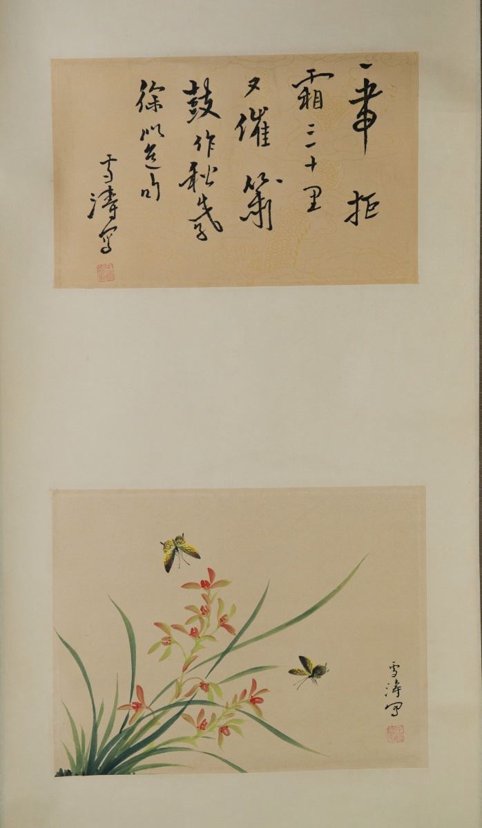 Flowers and butterflies, hanging scroll, Chinese ink and watercolour on paper, signed Wang Xue Tao (1903-1982) with red seals; 65 cm x 32 cm; Provenance: T. Ng Collection Toronto