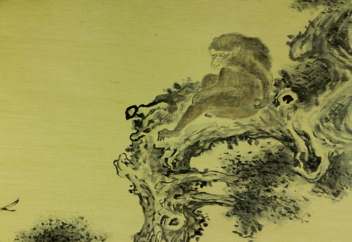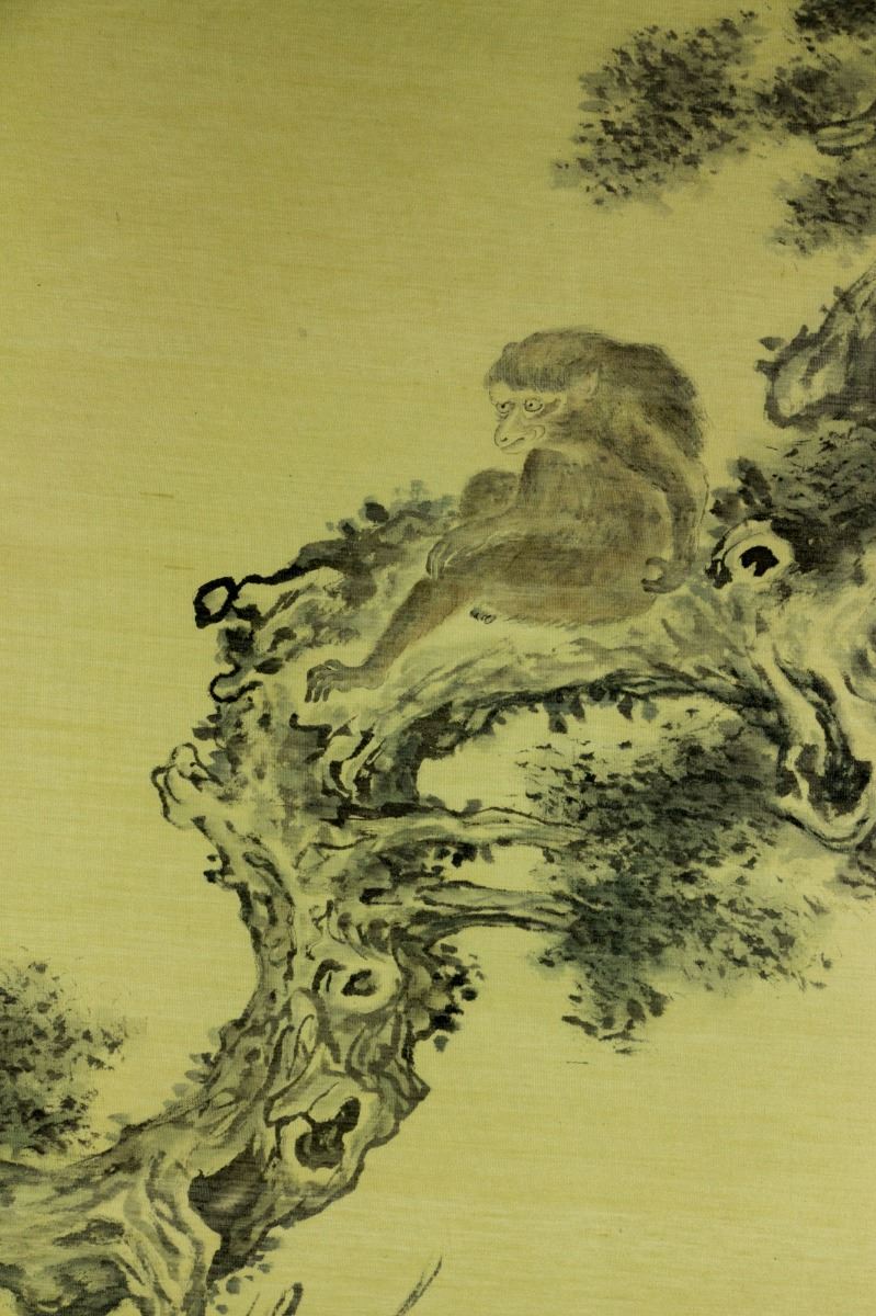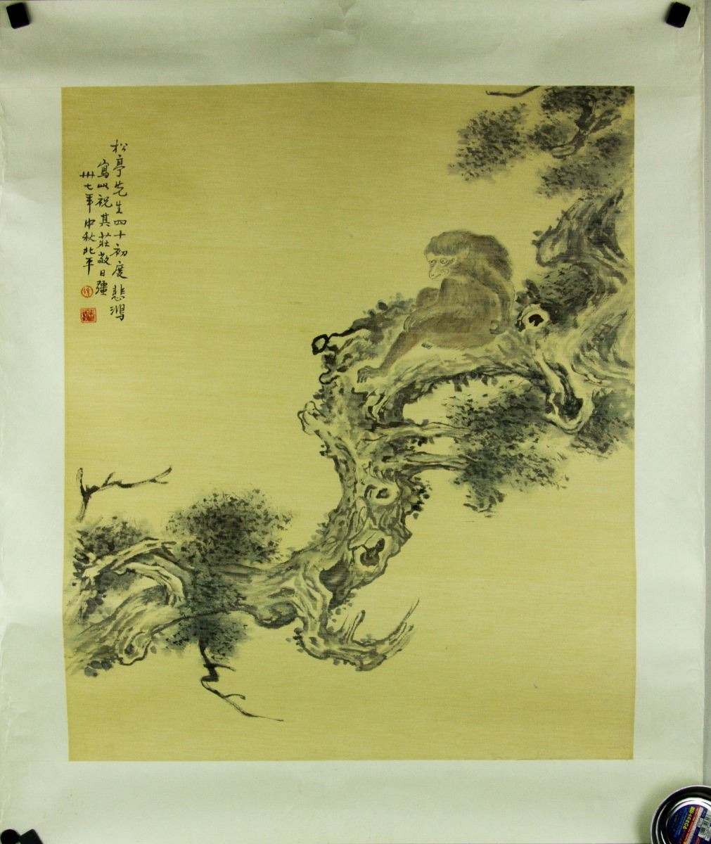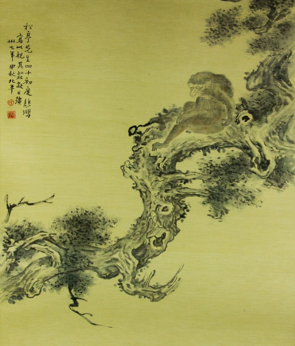 Moneky perching on pine tree branch; Chinese ink and watercolour on paper; signed Xu Beihong and inscribed with two artist seals; 95 cm × 79 cm