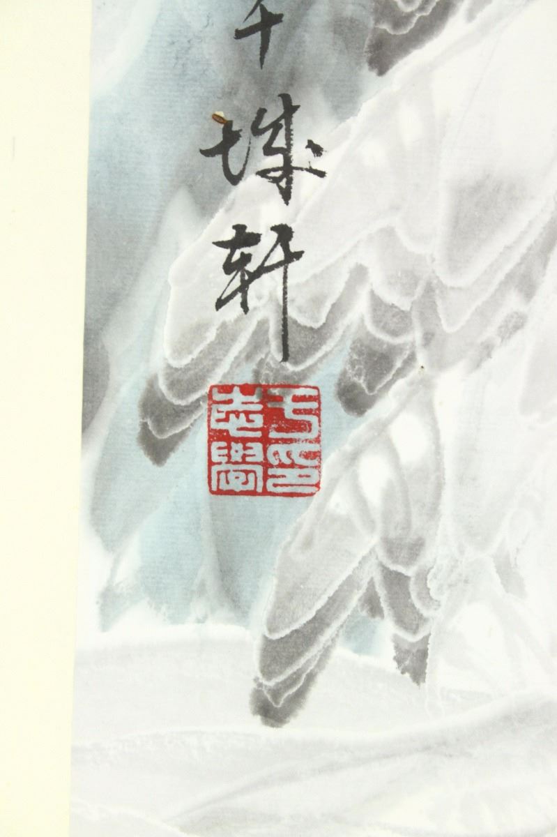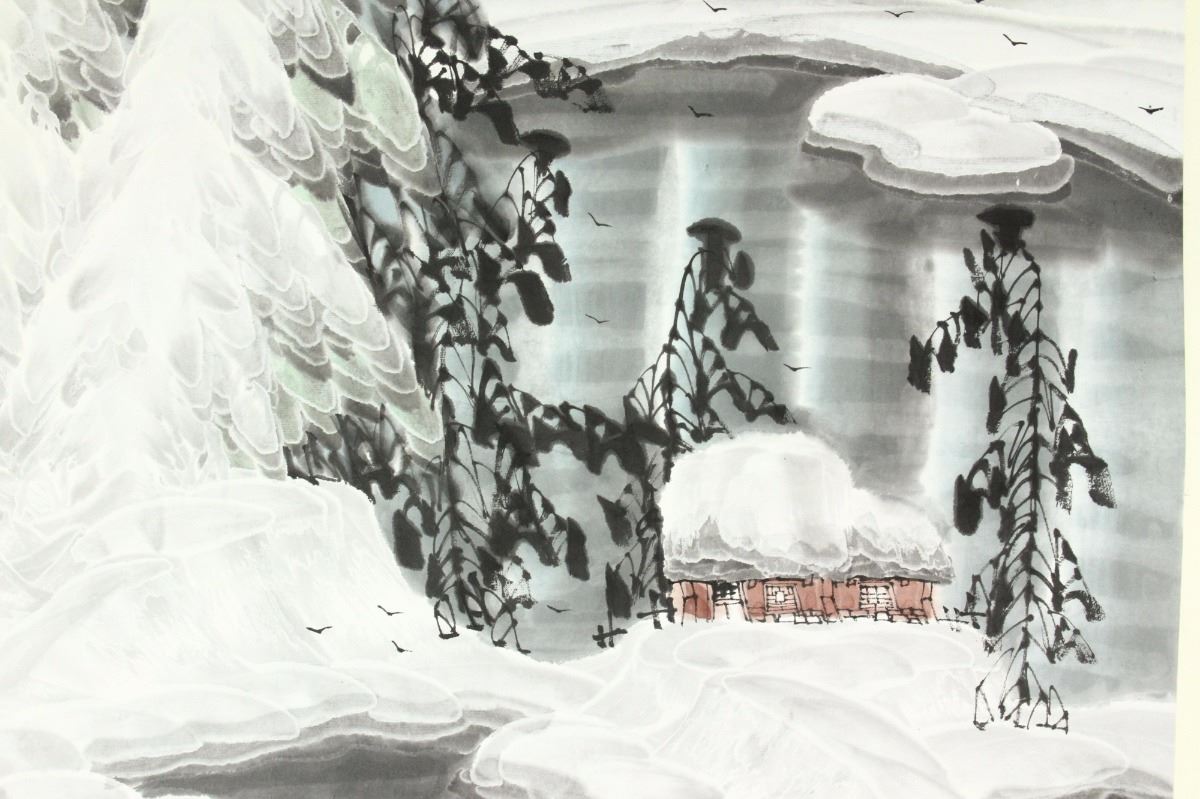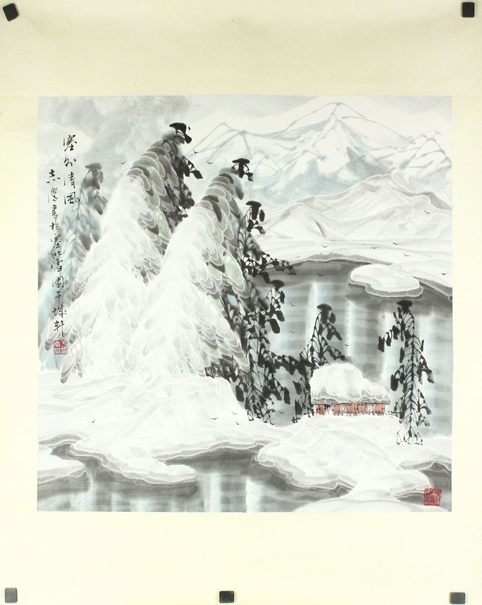 Snow scene; Chinese ink and watercolour on paper; signed Yu Zhixue and inscribed with two artist seals; 73 cm x 68 cm