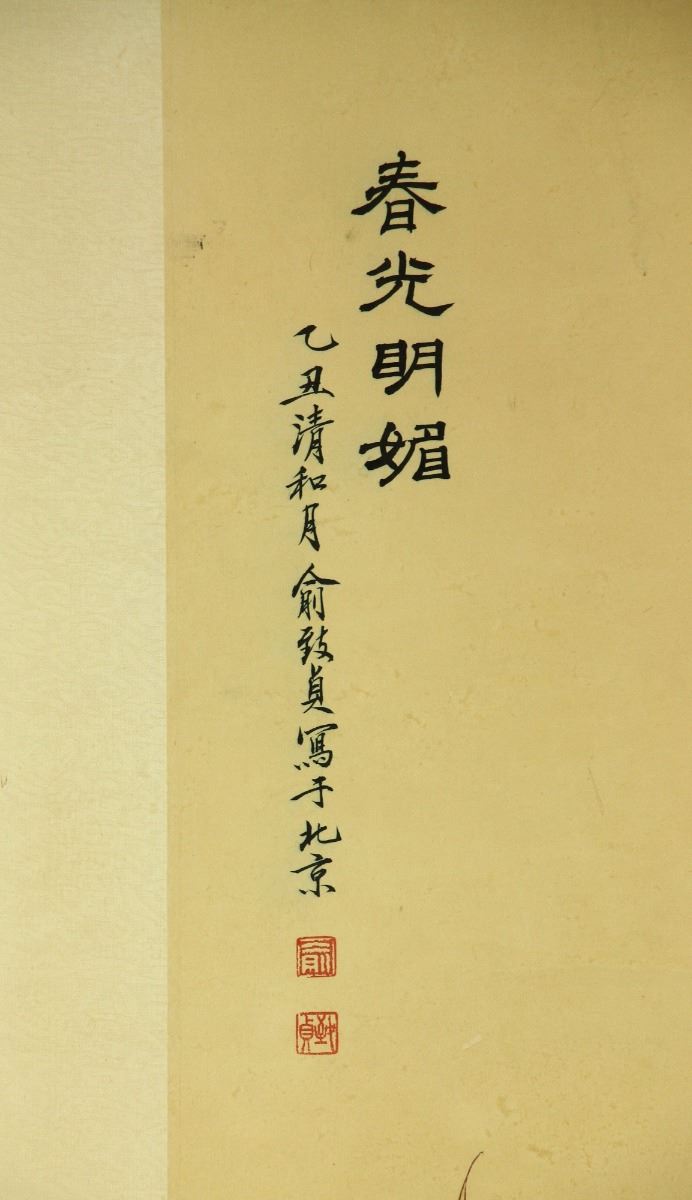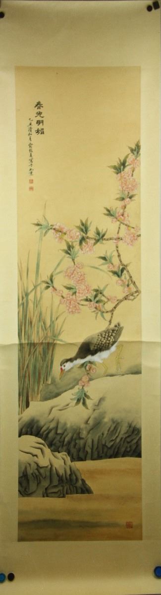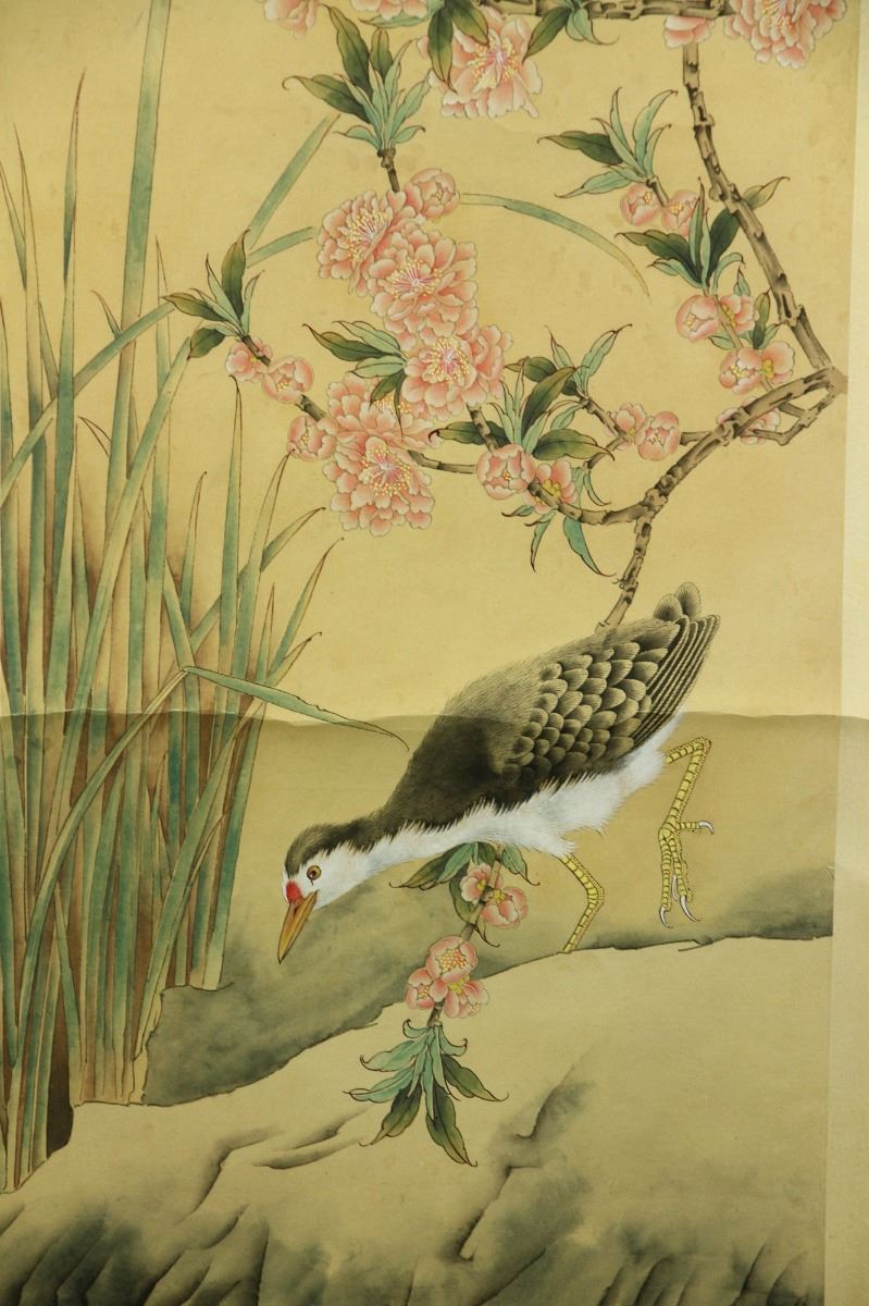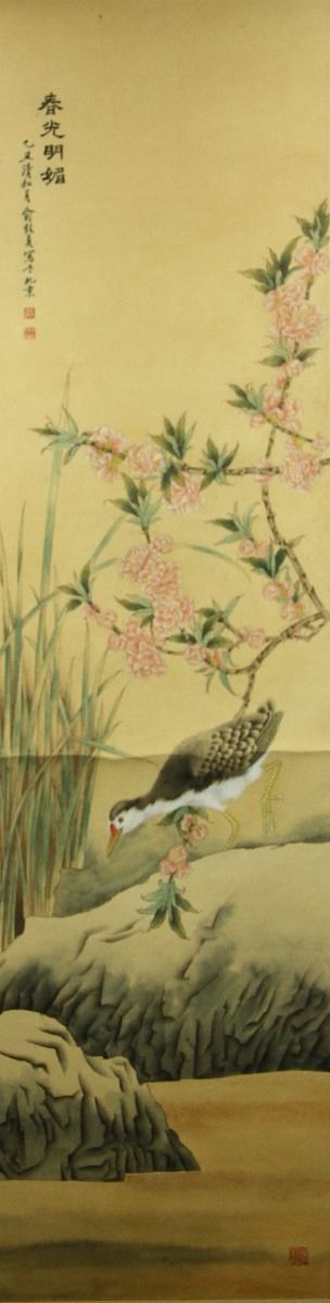 Flower and bird; Chinese ink and watercolour on paper; signed Yu Zhizhen and inscribed with two artist seals; 61 cm × 230 cm