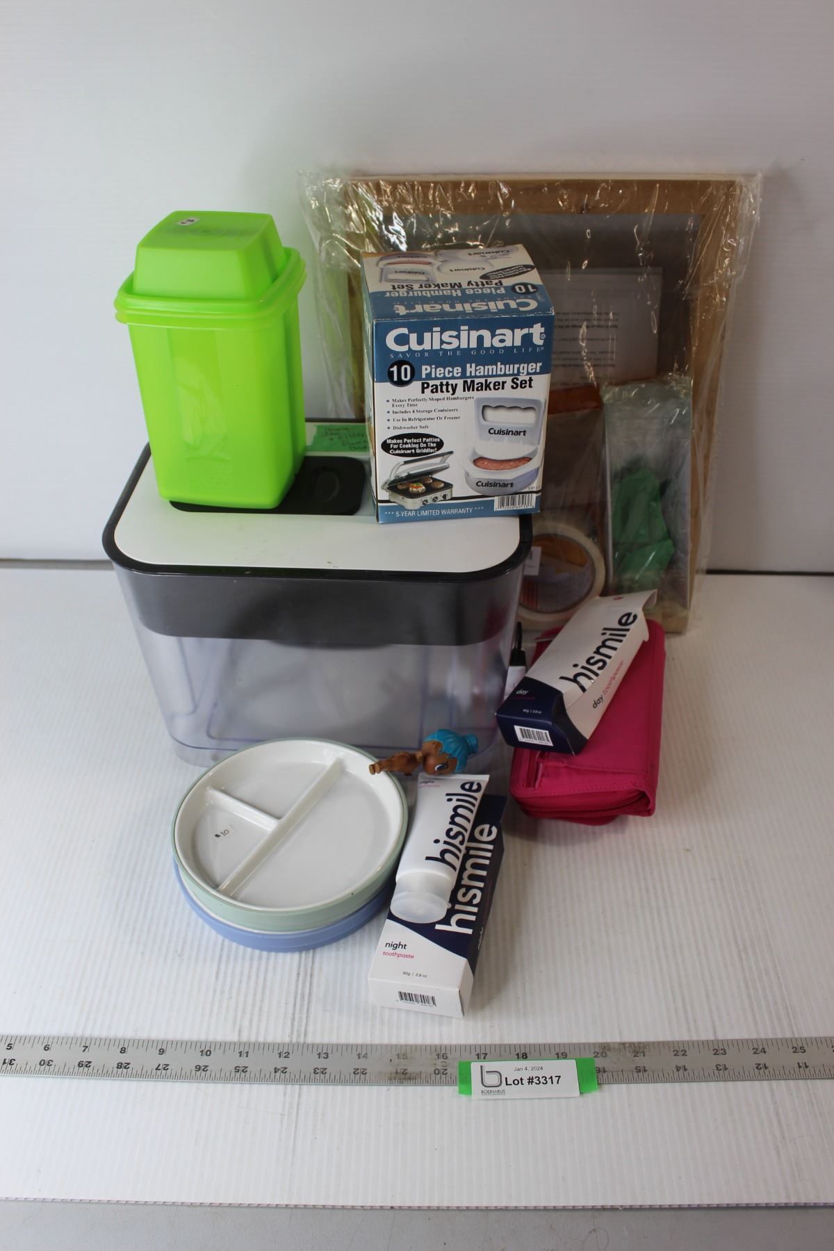 Waterdrop Filtration Reservoir, Screen Printing Starter Kit, Sign, Book, Toothpaste, Hamburger Patty Maker Set, Divided Dishes, Tupperware