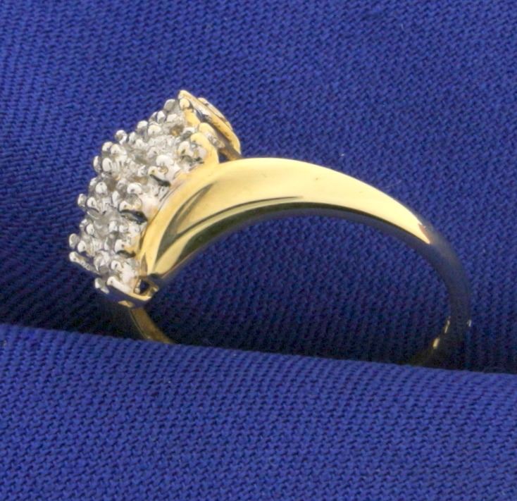 The 10k ring contains 15 brilliant cut diamonds with SI clarity and J color. Ring is waterfall style and is a size 7. 1.9g