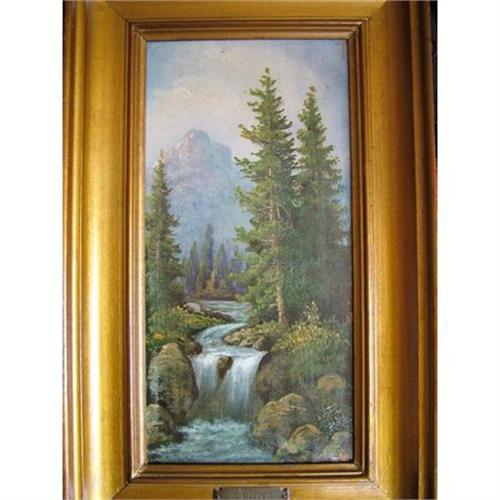<tr><td>Title:Waterfall and forest original oil signed</td></tr>