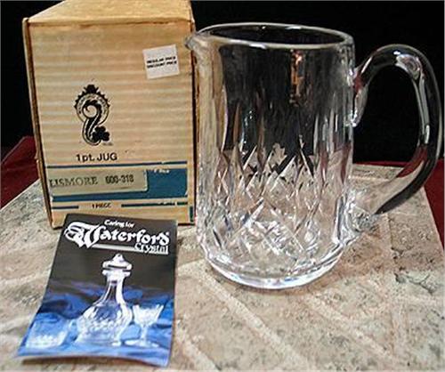 Waterford Crystal 1pt. Jug with its original box. Lismore pattern, no chips or cracks stands 5 3/4" tall