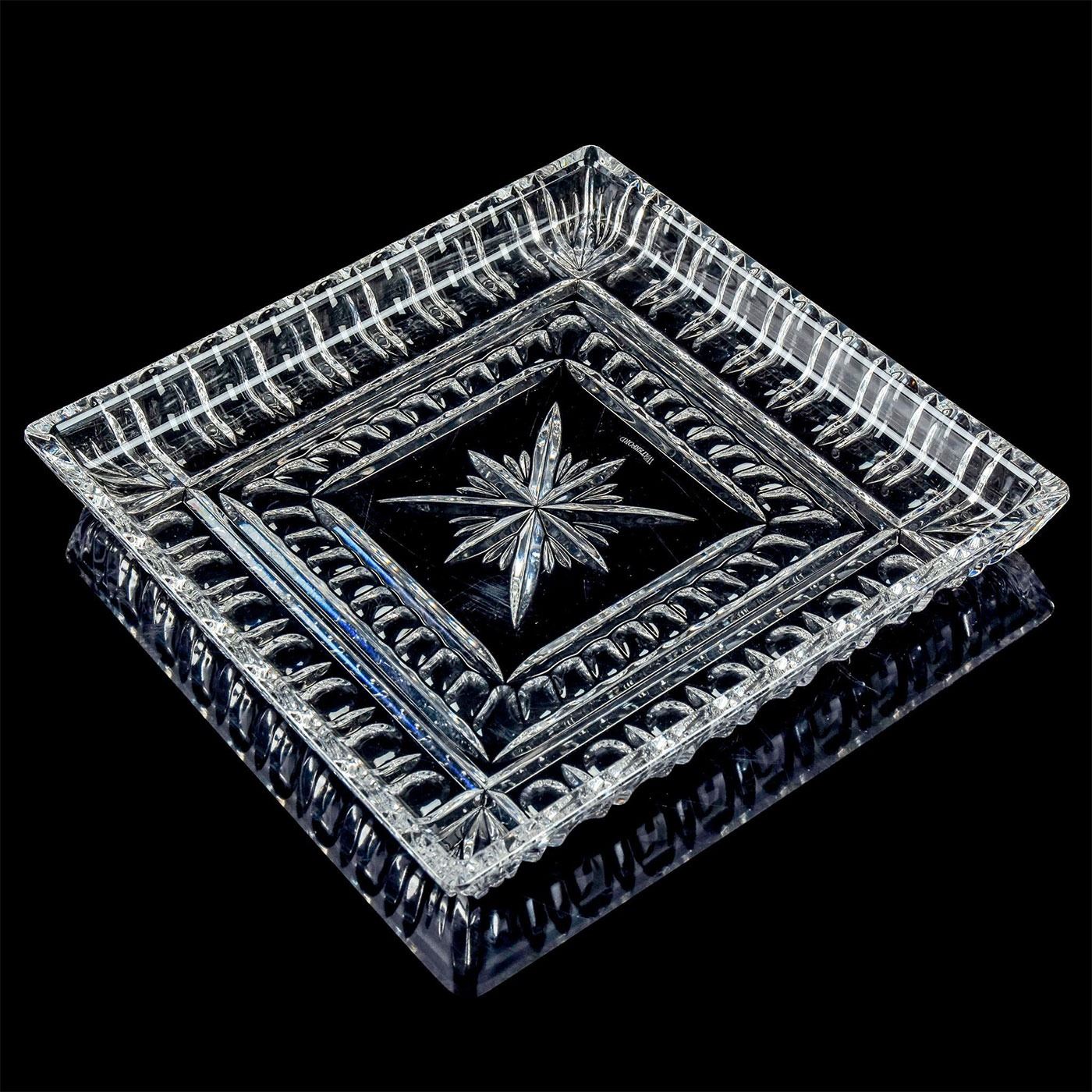 Square clear crystal serving tray in Grafton Street (Georgian Designs) pattern. Waterford etched on the bottom. Minor scratches in the center. #waterford #waterfordcrystal