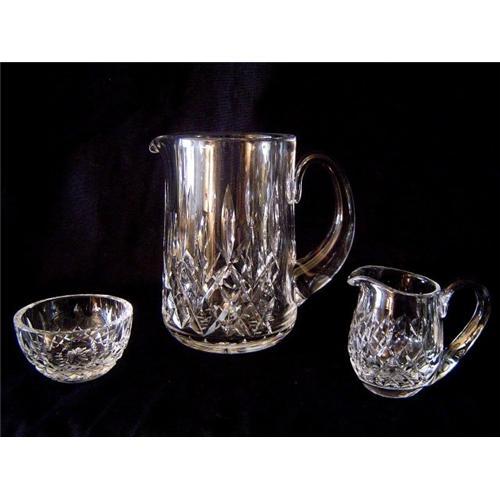 Never used. Used only for display. Perfect condition. Pitcher, sugar and creamer, all Lismore pattern. Pitcher measures 6.50 inches high and 4 inches in diameter. Creamer is 3 inches high and 2 inches in diameter. The sugar bowl is 1.75 inches high, 3.25 inches in diameter at toop and 2 inches diameter at bottom. All signed Waterford.</font>