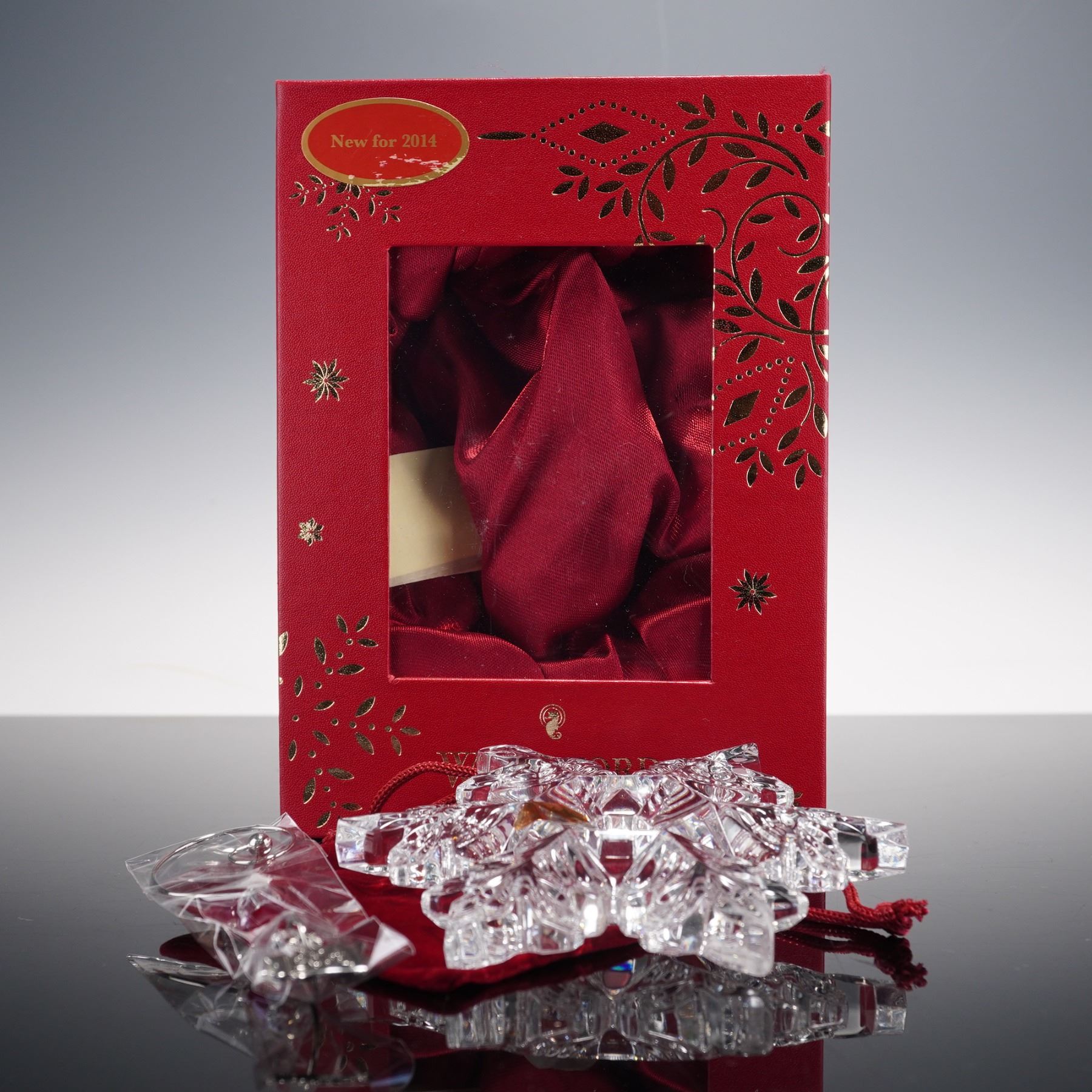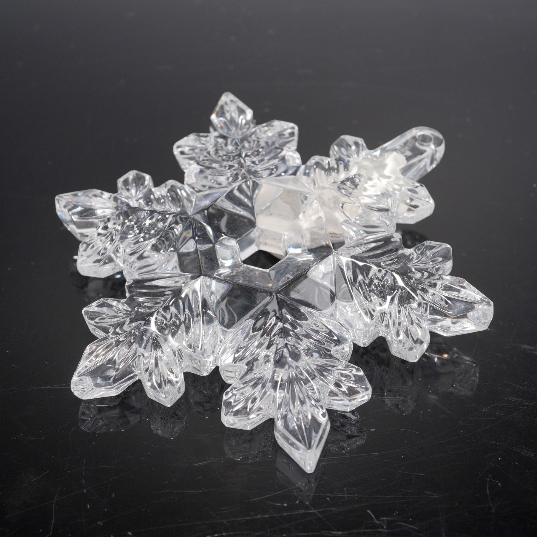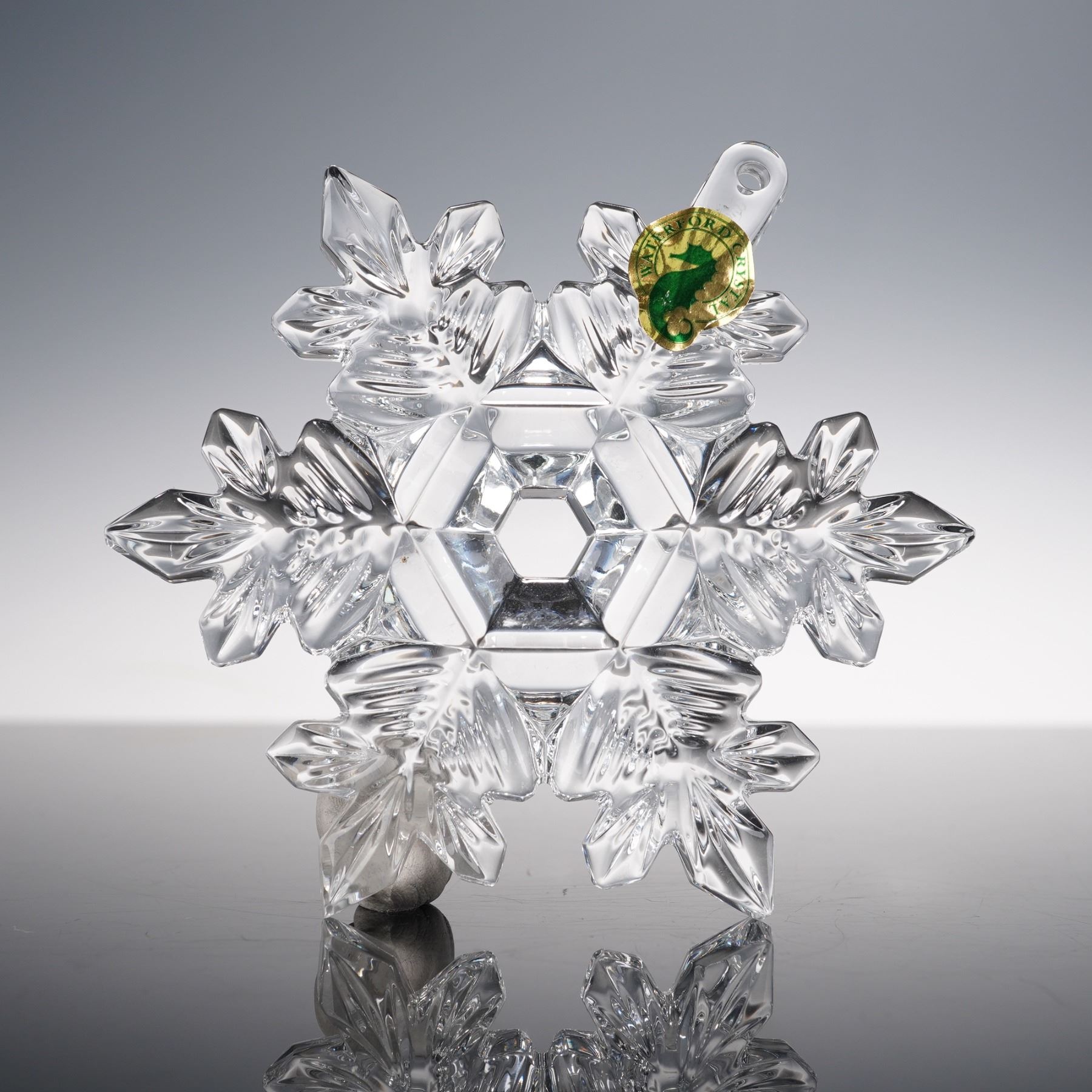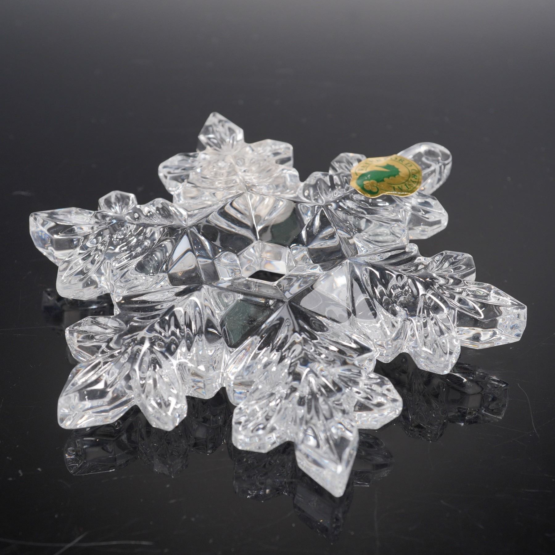 This stunning Waterford Crystal Snowflake Ornament is a beautiful addition to any collection. Featuring intricate design and a sparkling clear crystal structure, it captures the elegance of a snowflake with precise craftsmanship. The ornament is branded with the iconic Waterford seahorse logo and retains its original tag and box labeled New for 2014.