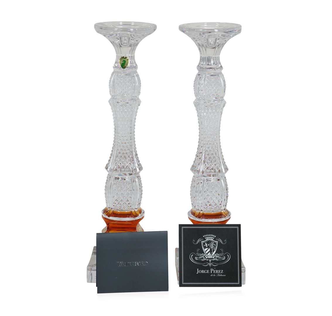 Beautiful Waterford Golden Age crystal candlesticks - New in Box!! -1/4" ~ BASE ~ 4 1/4" SQUARE - Inspired by Jorge Perez