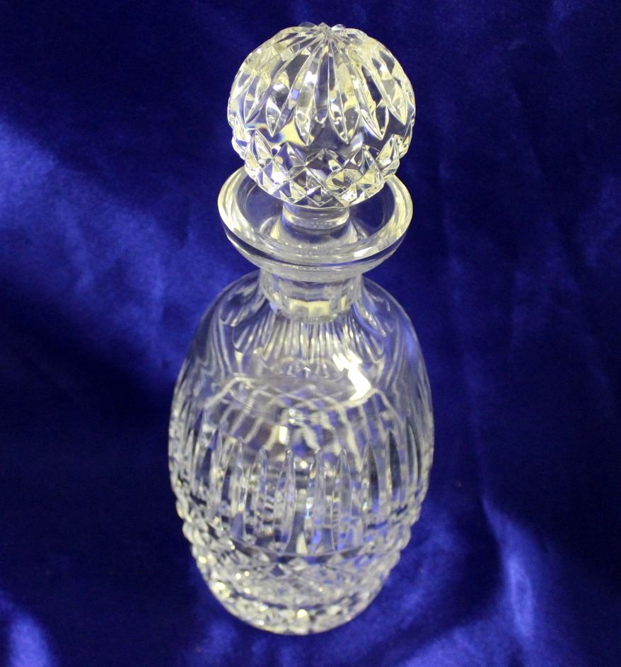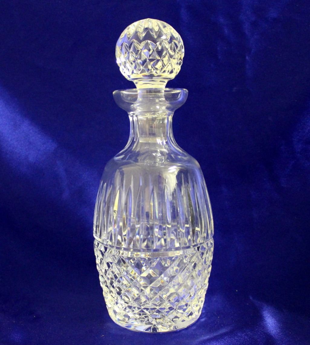 Excellent condition Waterford cut crystal spirits decanter in Maeve (cut) pattern. 10 5/8" high including stopper. Acid stamped "Waterford" on base.