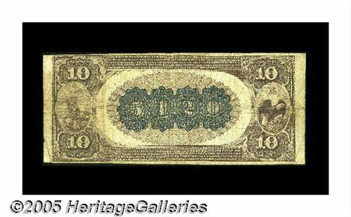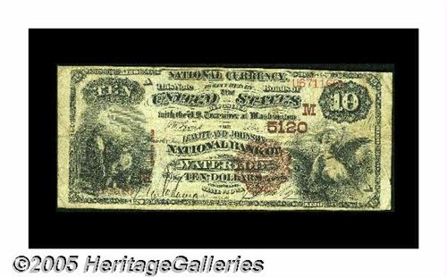 <B>Waterloo, IA</B></I> - $10 1882 Brown Back Fr. 490 <B>The Leavitt & Johnson NB</B></I> Ch. #(M) 5120<BR>This bank issued under two titles, this being the first, before lapsing into receivership in 1932. The <B>Fine</B></I> Brown Back we offer tonight is enhanced by strong officers' ink signatures.